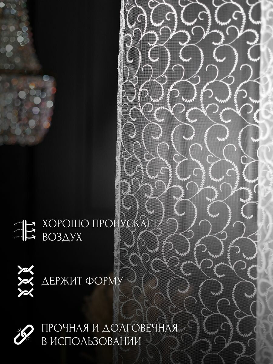 Тюль белая для комнаты, в гостиную, 260х300 см. информация: