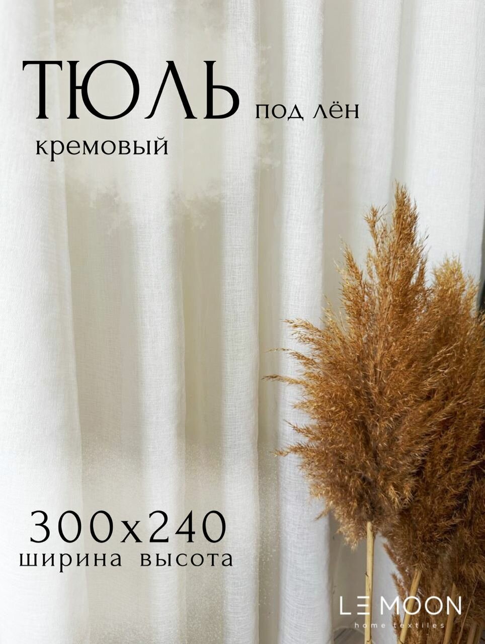10 цен на Тюль под лён с утяжелителем 300х240 кремовый в спальню, в комнату, в детскую, на кухню