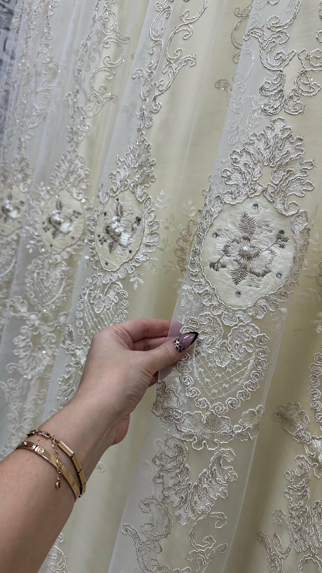 Тюль сеточка с вышивкой, Айвори с бежевым 6м, высота 2,7м информация: