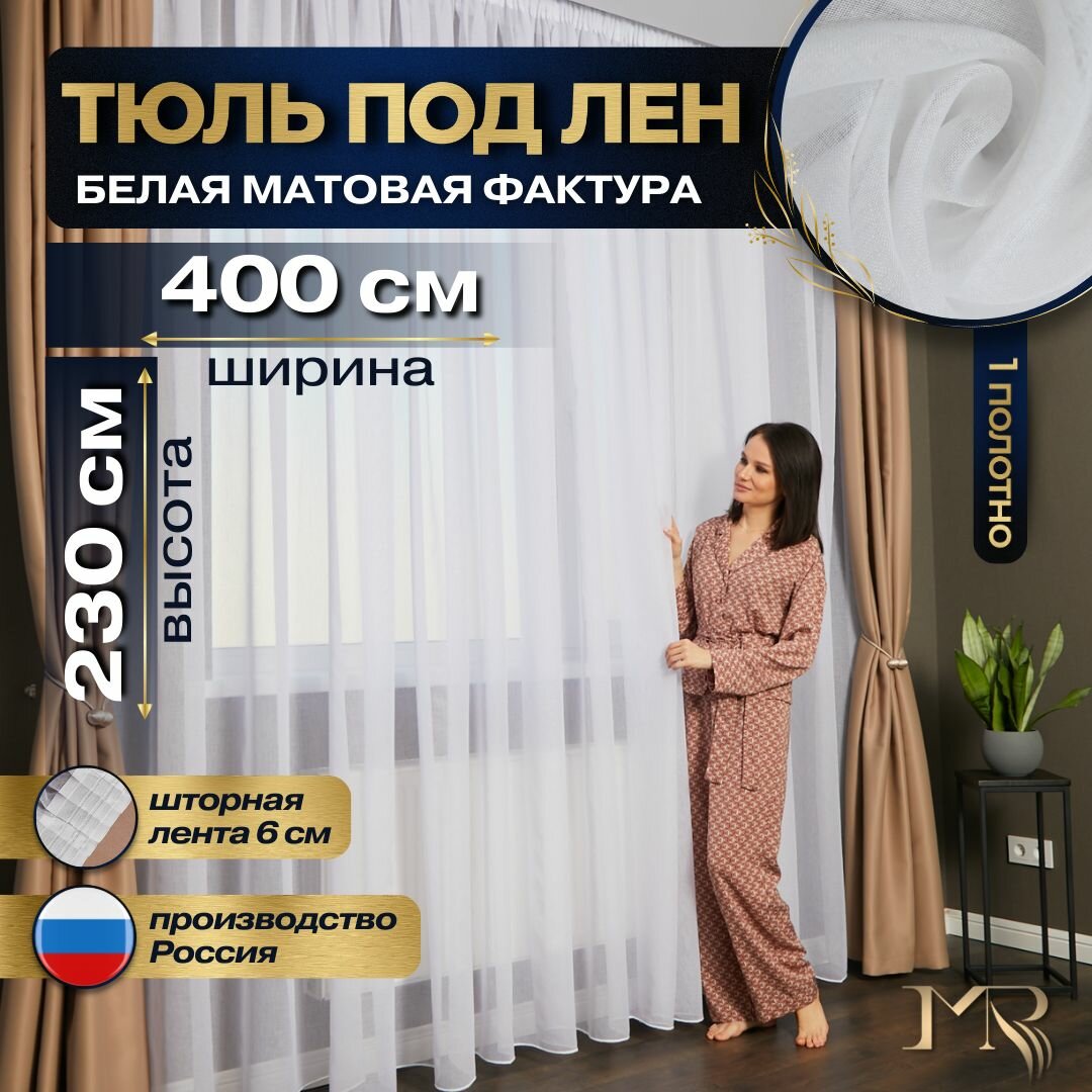 10 цен на Тюль под лен в гостиную высота 230 см ширина 400 см на шторной ленте 6 см с утяжелителем, в спальню комнаты и кухню