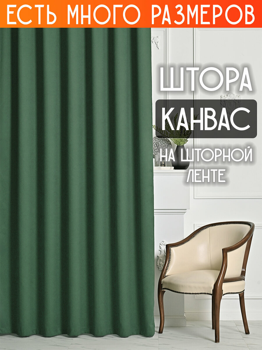 10 цен на Готовая плотная интерьерная штора(портьера) канвас 300x250 см.(1шт.) со шторной лентой