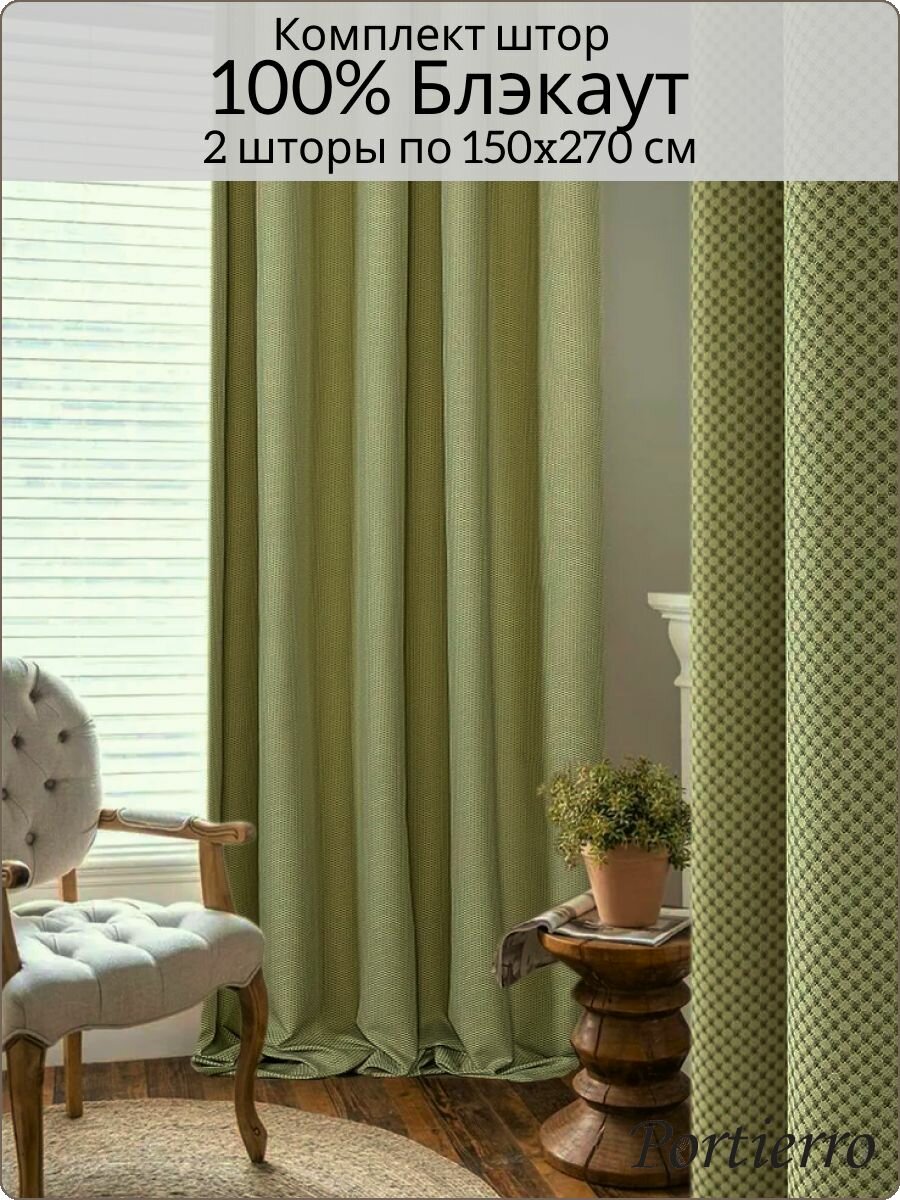 10 цен на Комплект блэкаут портьерных штор 300x270 см, 2 штуки, рогожка, цвет: лайм