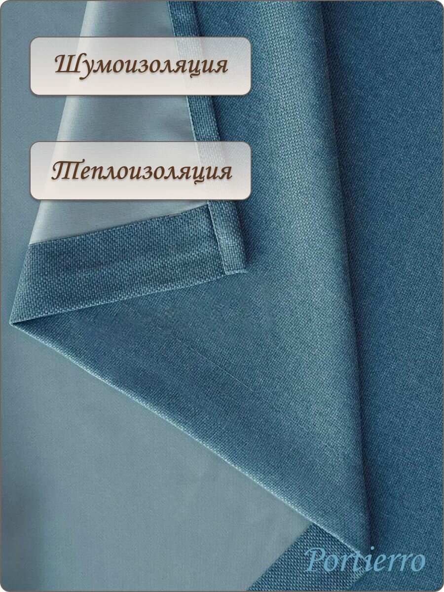 Комплект блэкаут портьерных штор 300x270 см, 2 штуки, рогожка, цвет: морской информация: