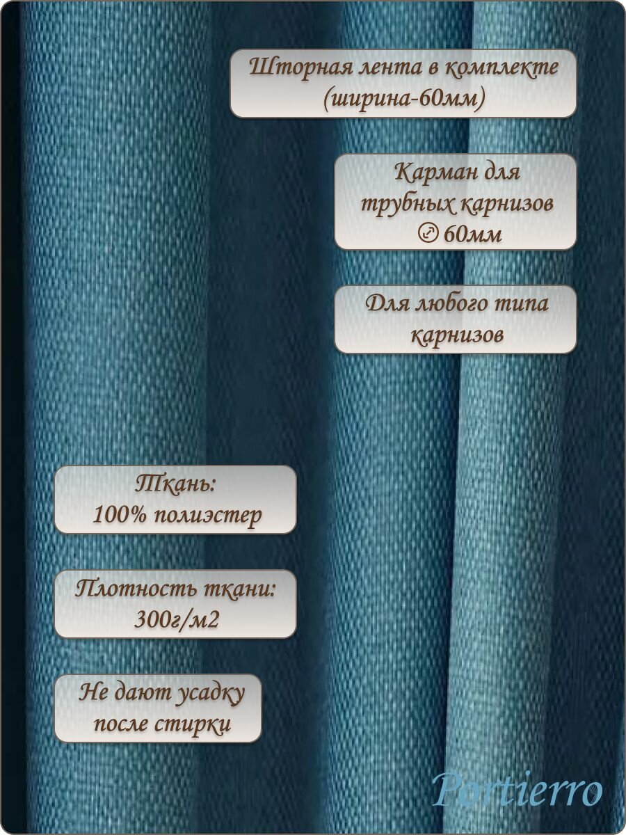 10 цен на Комплект блэкаут портьерных штор 300x270 см, 2 штуки, рогожка, цвет: морской