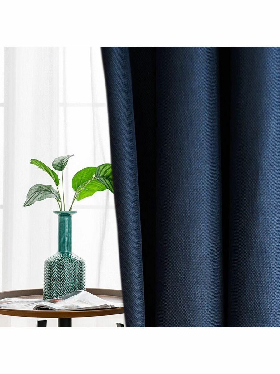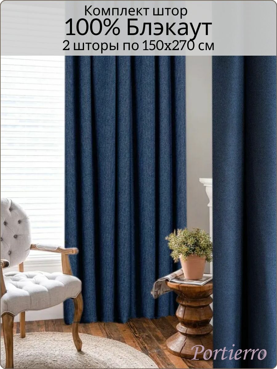 10 цен на Комплект блэкаут портьерных штор 300x270 см, 2 штуки, рогожка, цвет: темно-синий