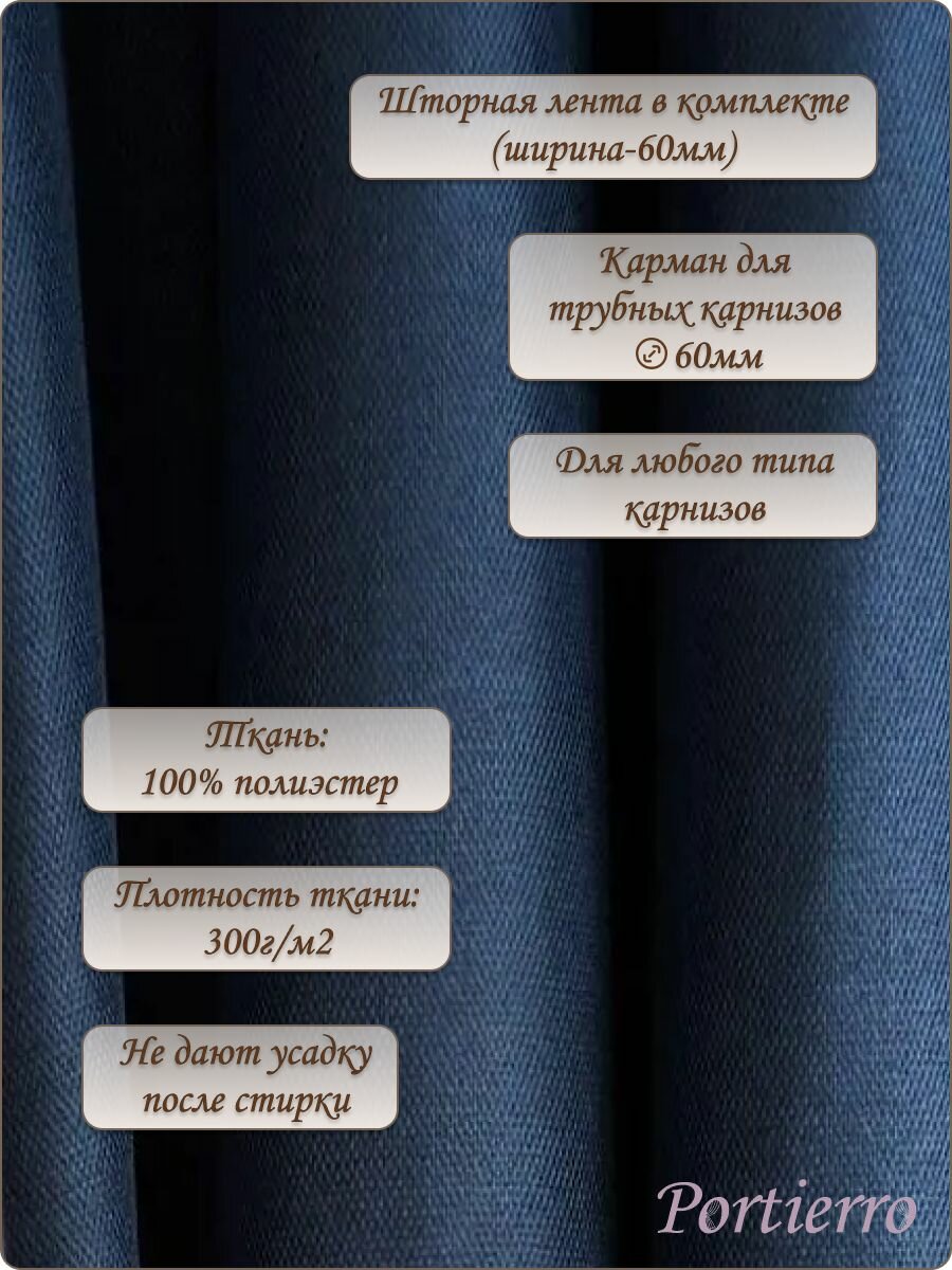 Комплект блэкаут портьерных штор 300x270 см, 2 штуки, рогожка, цвет: темно-синий информация: