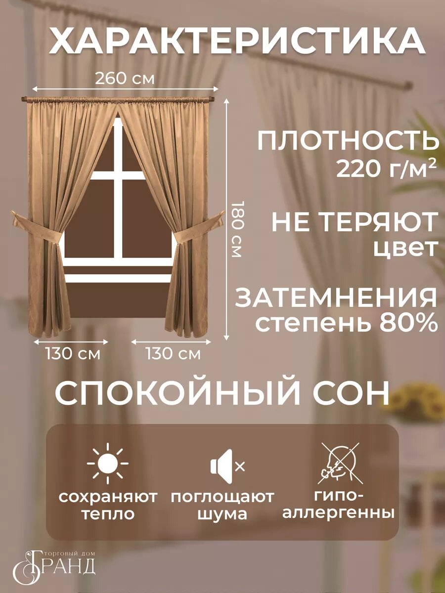 Шторы Торговый дом Гранд, 150Х260 см - 2шт, бархатные, с подхватами, для гостиной и спальни 2 400 ₽