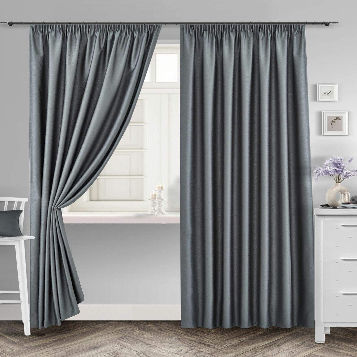 Комплект штор для комнаты Shtoraland Блэкаут 100%, графитовый, 150x270 см - 2 шт, однотонные светонепроницаемые. 3 089 ₽