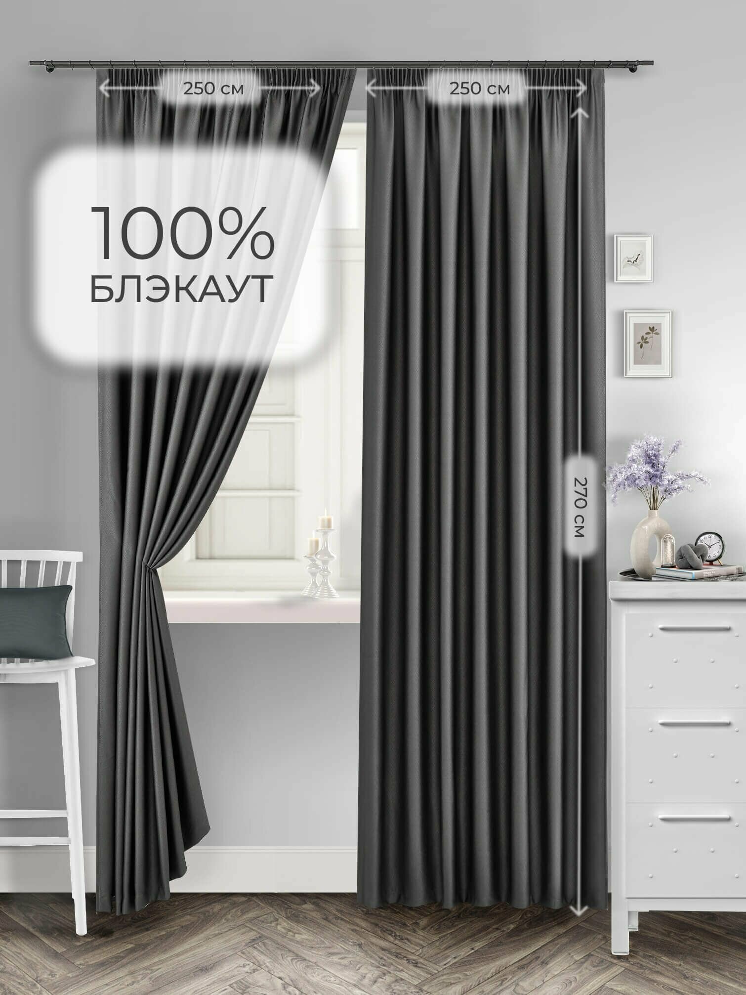 10 цен на Комплект штор для комнаты Shtoraland Блэкаут 100%, графитовый, 250x270 см - 2 шт, однотонные светонепроницаемые.