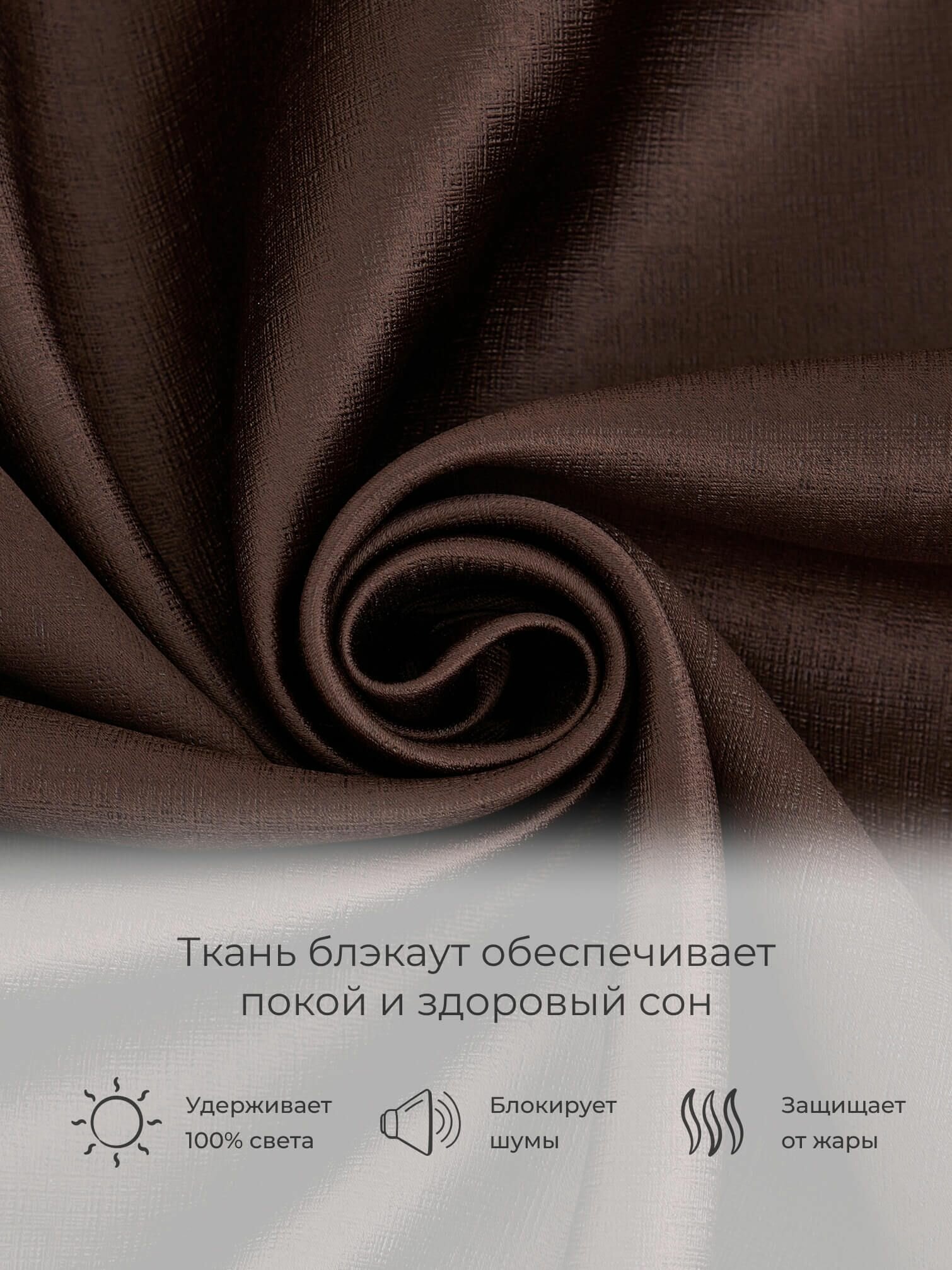 Комплект штор для комнаты Shtoraland Блэкаут 100%, коричневый, 200x270 см - 2 шт, однотонные светонепроницаемые. информация: