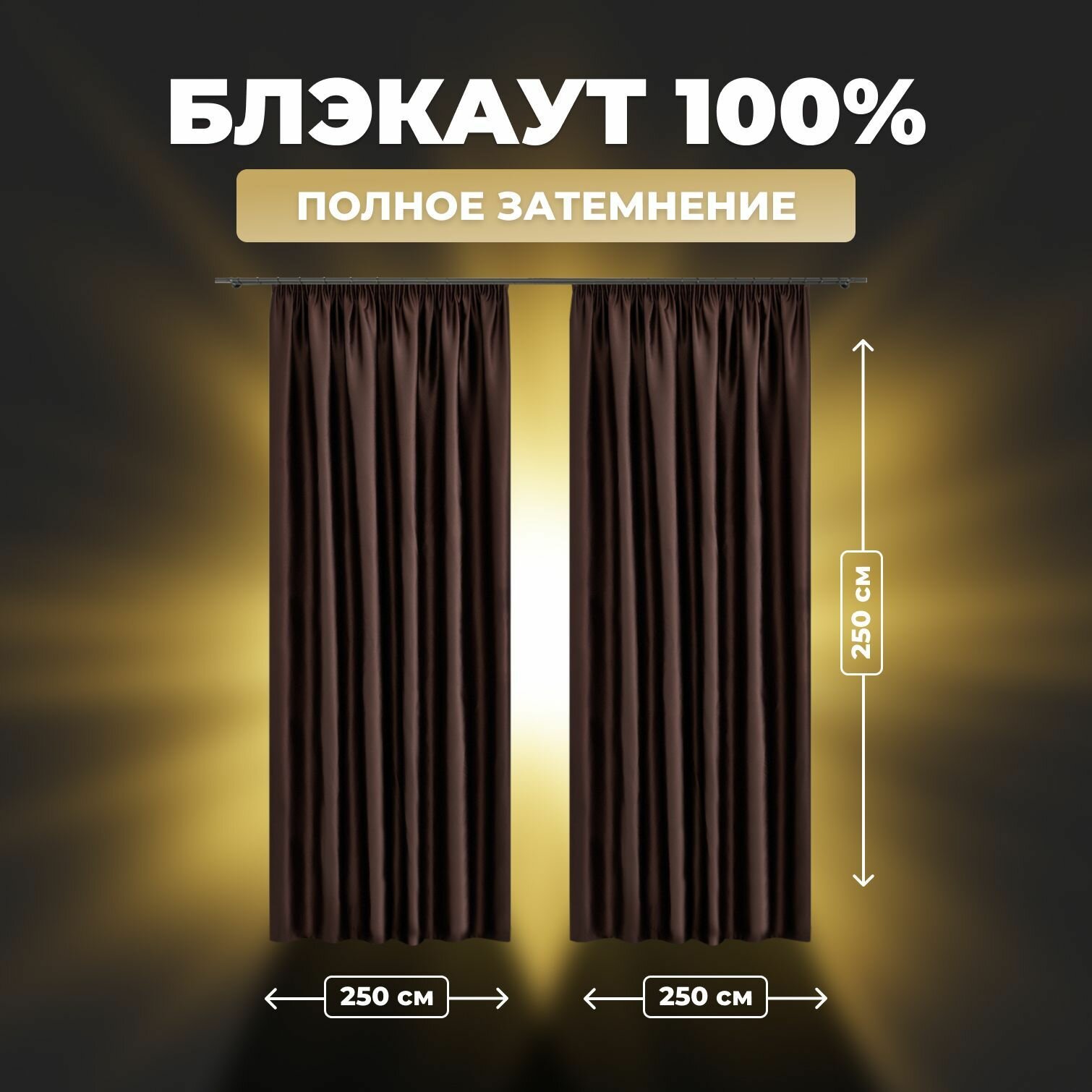 Отзывы на Комплект штор для комнаты Shtoraland Блэкаут 100%, коричневый, 250x250 см - 2 шт, однотонные светонепроницаемые.