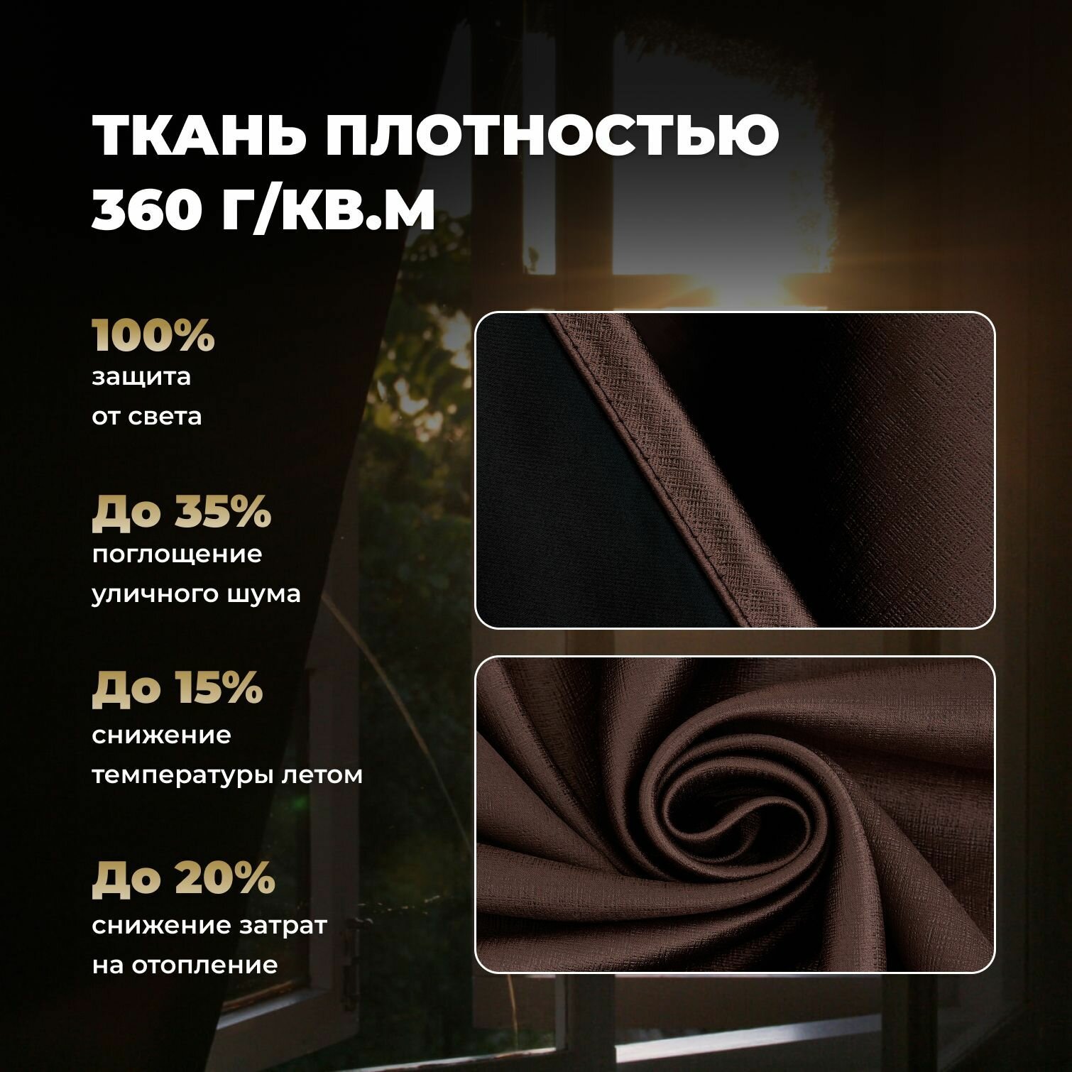 Комплект штор для комнаты Shtoraland Блэкаут 100%, коричневый, 250x270 см - 2 шт, однотонные светонепроницаемые. информация: