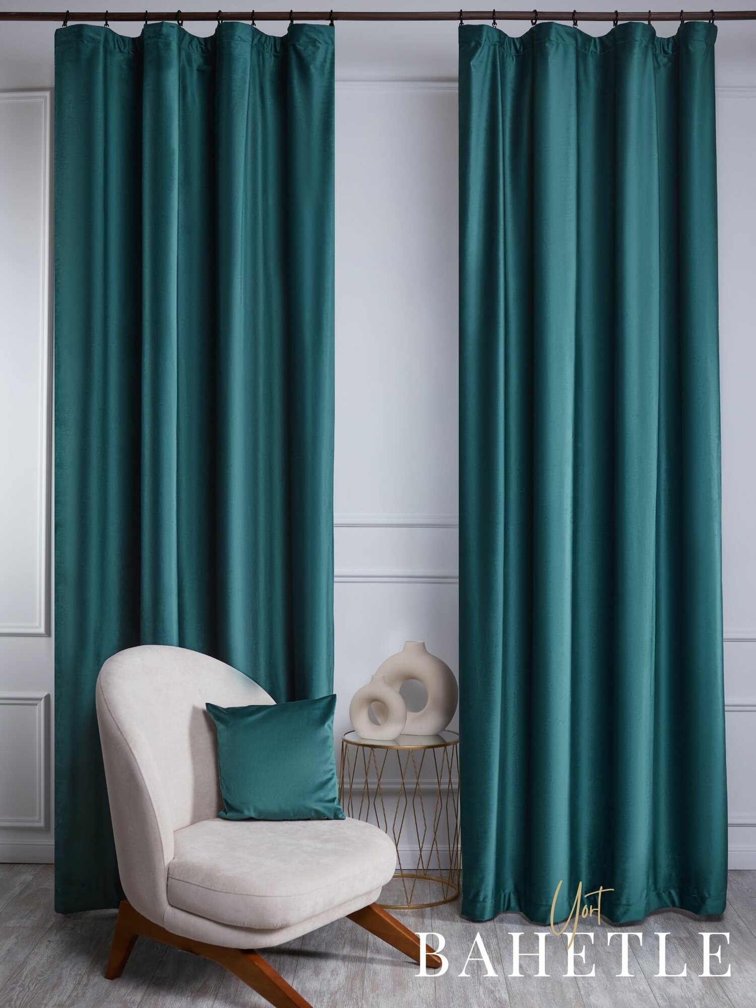 Отзывы на Комплект штор Bahetle Бархат велюр 150х250 см 2 шт, готовые портьеры димаут на ленте для комнаты, кухни, гостиной, зала однотонные изумрудные