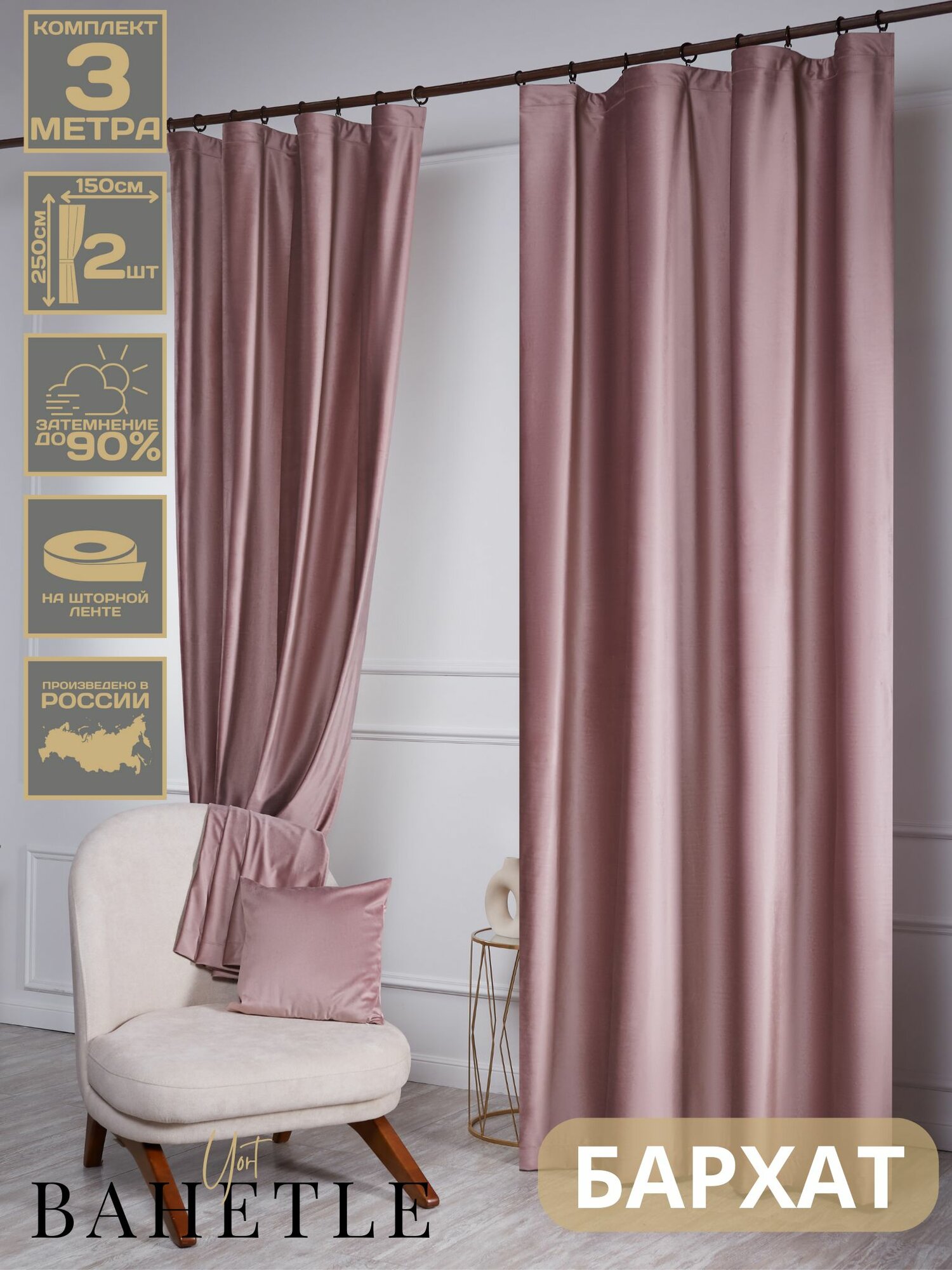 Комплект штор Bahetle Бархат велюр 200х250 см 2 шт, готовые портьеры димаут на ленте для комнаты, кухни, гостиной, зала однотонные пудра 4 692 ₽