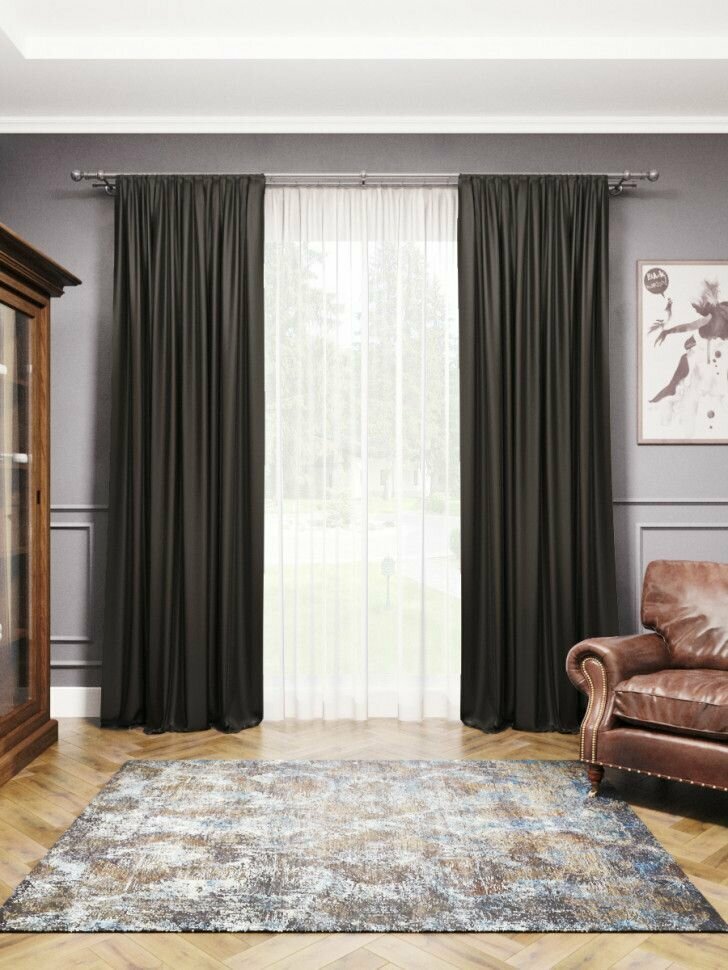 Комплект штор блэкаут 300*270 см / шторы blackout / Шторы плотные, светозащитные для спальни, гостиной и кухни, Черный информация: