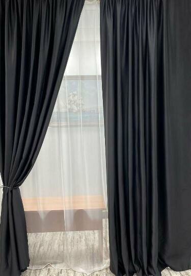 Комплект штор блэкаут 300*270 см / шторы blackout / Шторы плотные, светозащитные для спальни, гостиной и кухни, Черный 2 490 ₽