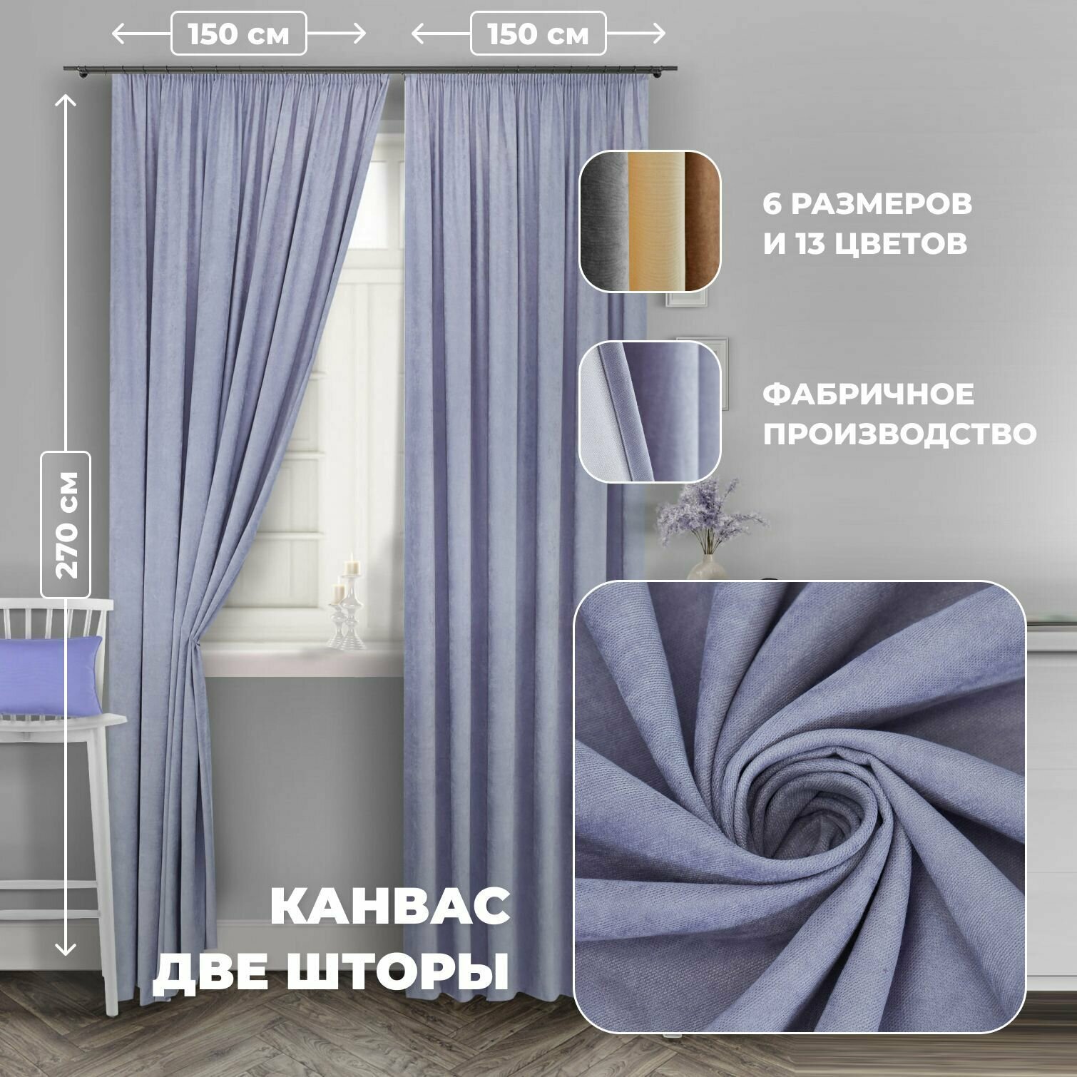 Комплект штор для комнаты Канвас Shtoraland на ленте для крючков, две портьеры для гостиной, спальни, детской. Общий размер 300x270 см, серо-сиреневый информация: