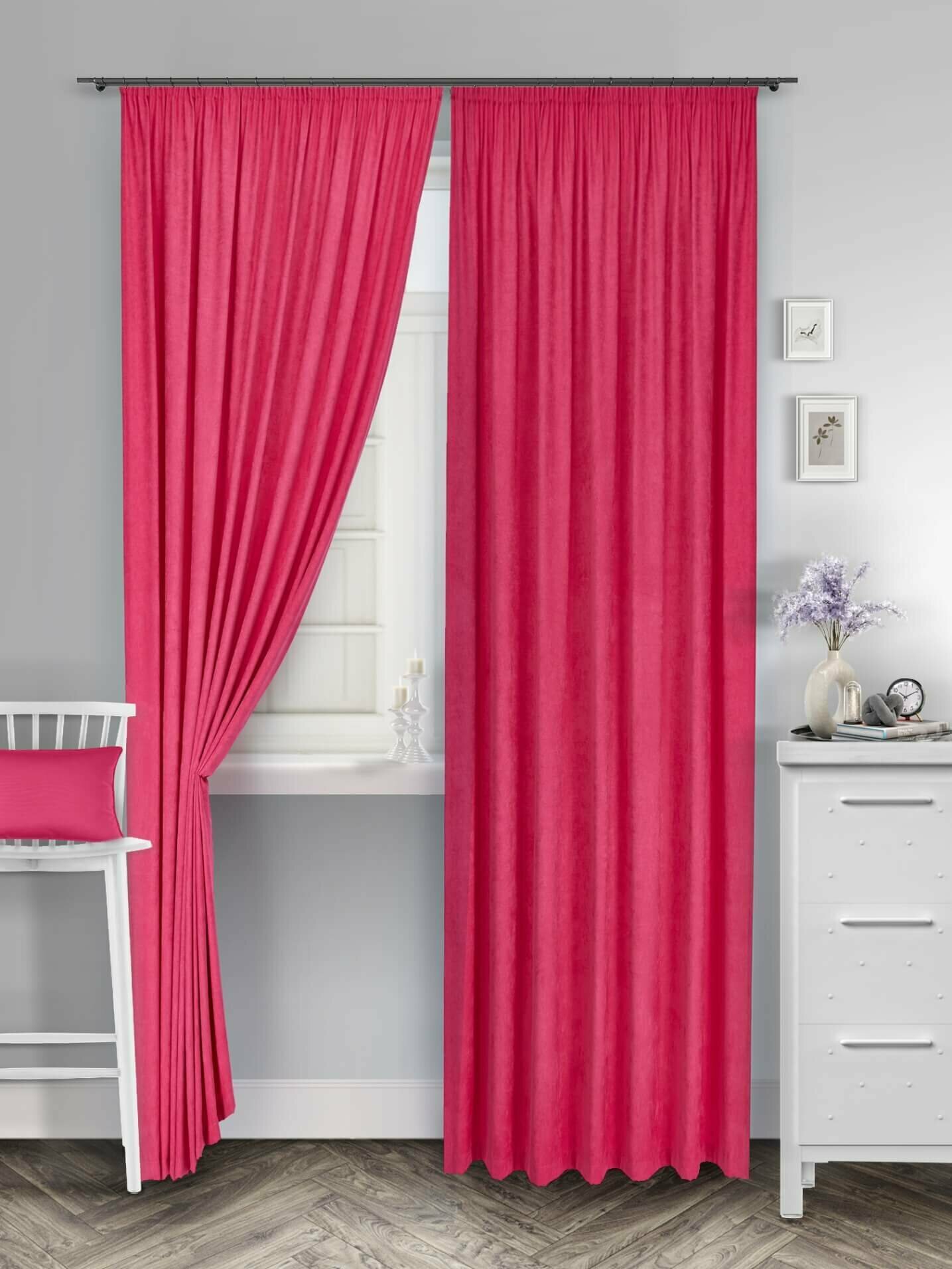 Комплект штор для комнаты Канвас Shtoraland на ленте для крючков, две портьеры для гостиной, спальни, детской. Общий размер 500x250 см, малиновый 4 290 ₽