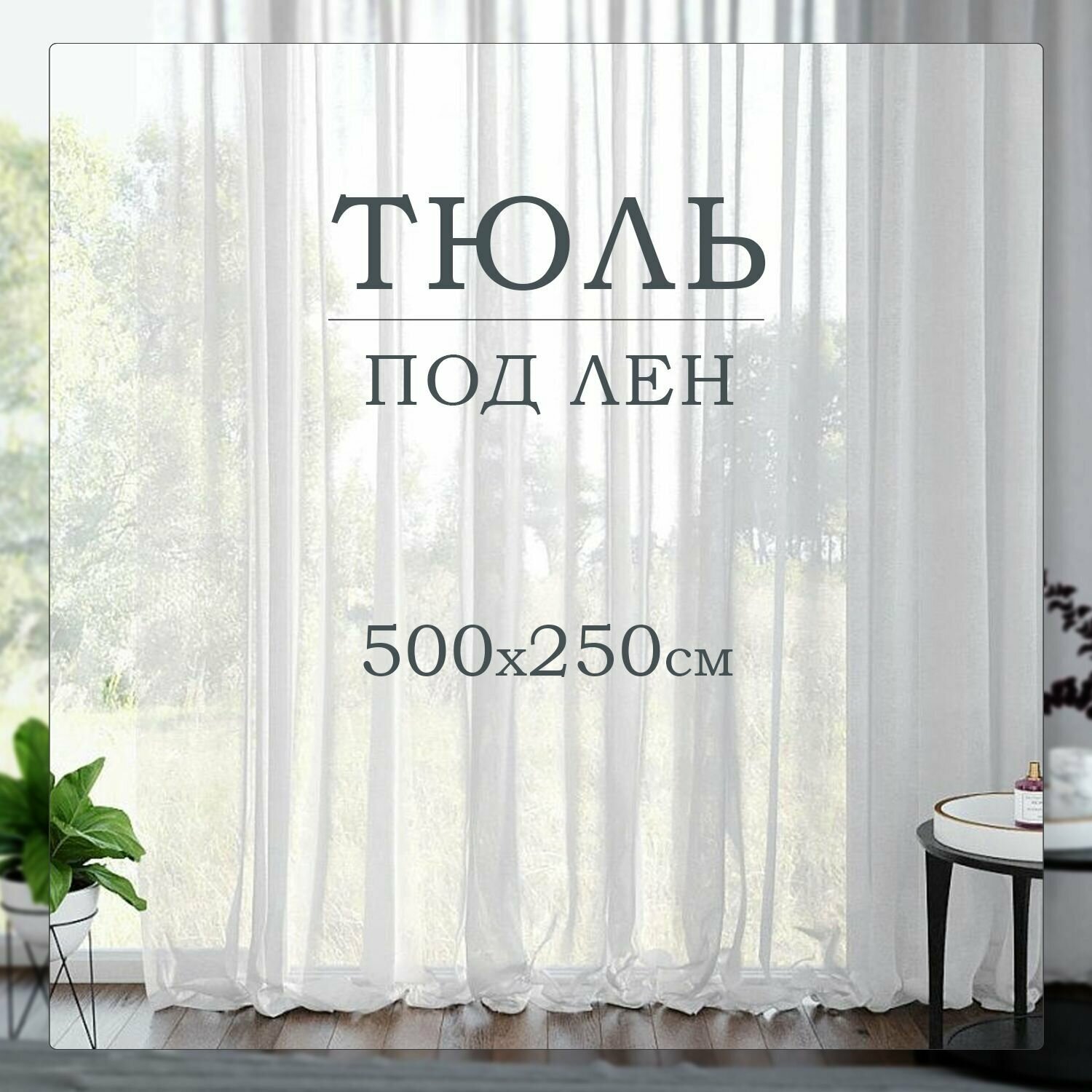 Тюль Лен с утяжелителем / Высота 250см Ширина 500см (2.5 на 5.0 м ) Тюль для кухни /Тюль в гостиную /Тюль в детскую /шторы
