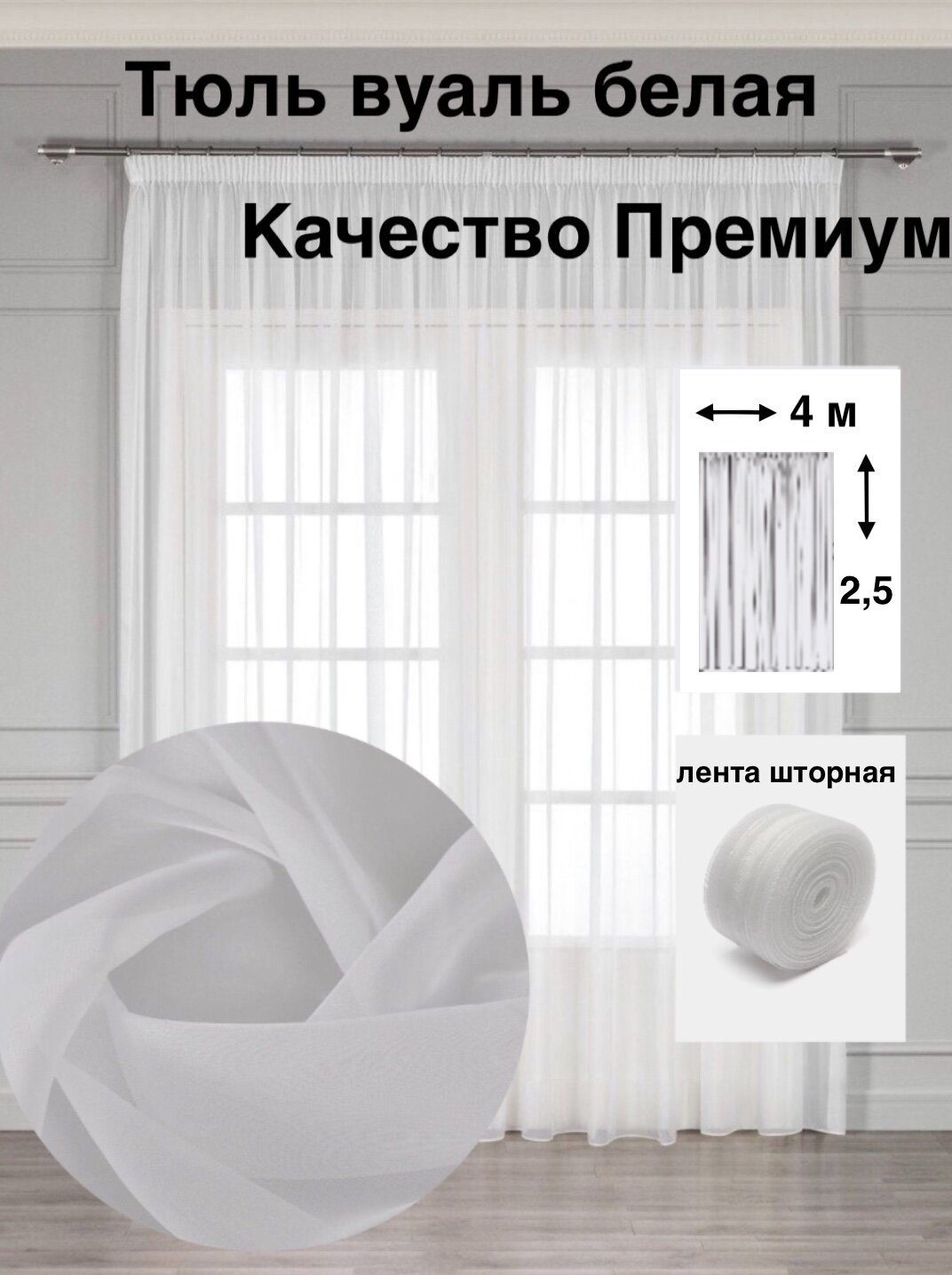 Тюль "Премиум" / 1 шт / 400*250 см / для гостиной, спальни, дома, дачи / ткань вуаль / белая информация: