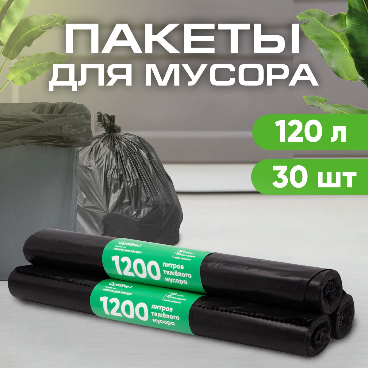 10 цен на Мешки для мусора 120л, прочные 50 мкм, ПВД, 10шт/рул, 70х110 см, 3 рулона в наборе (23-0052)