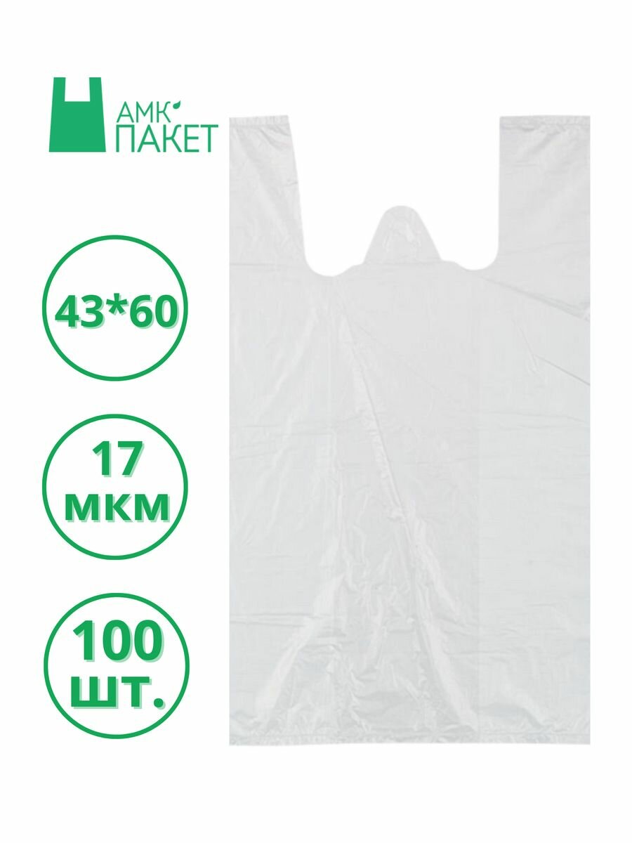 Пакет майка белый большой 43х60 17 мкм 100 шт. информация: