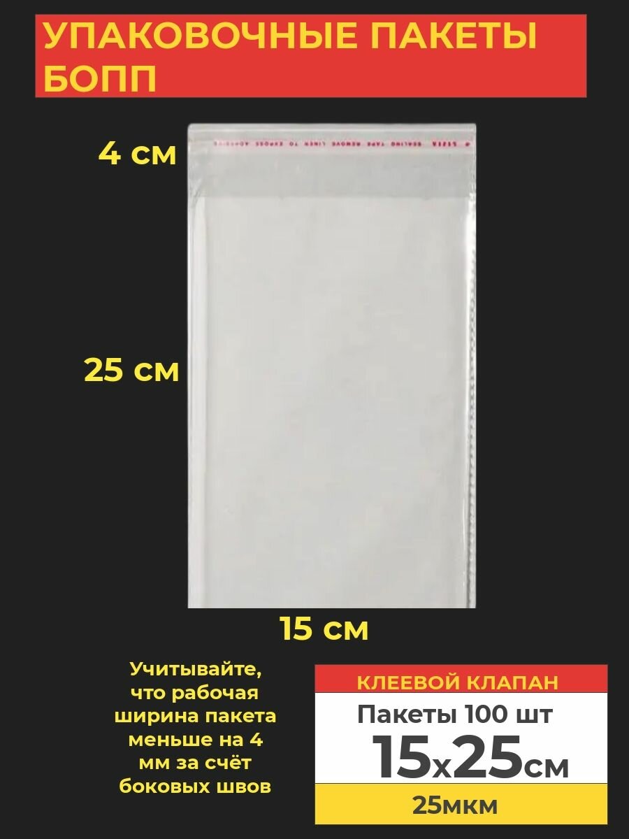 Упаковочные бопп пакеты с клеевым клапаном, 15*25 см,100 шт. информация: