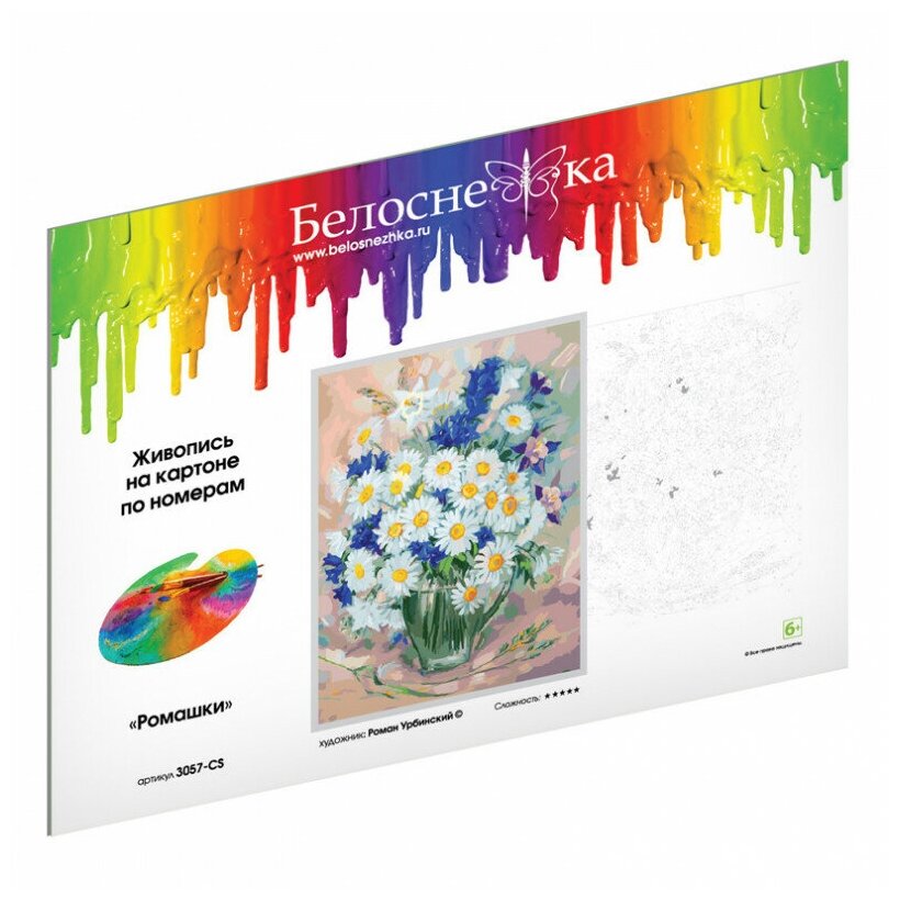 Картина по номерам Белоснежка "Ромашки" / Раскраска / На картоне 30х40 см. / Цветы / Натюрморт информация: