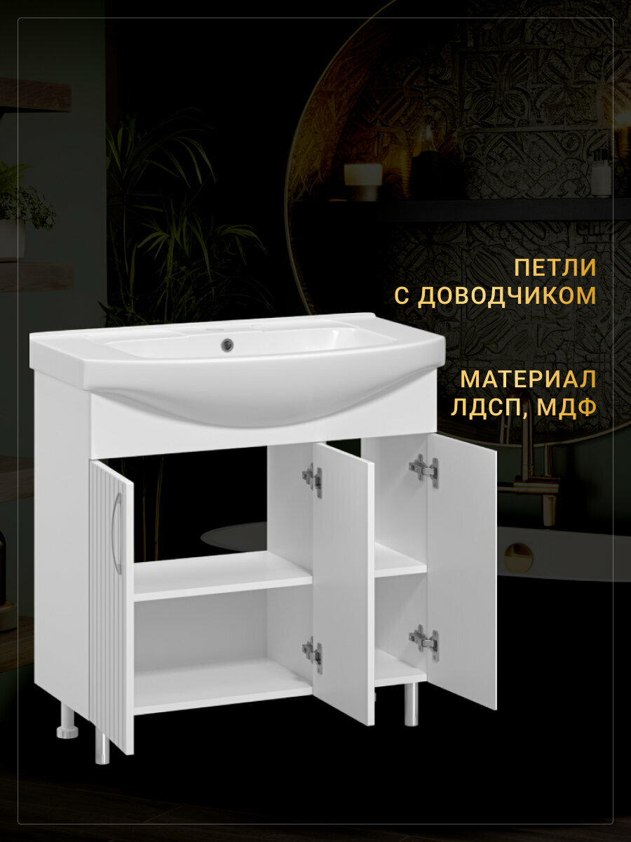 Тумба с раковиной напольная Misty Изео - 85 прямая, белая пленка информация: