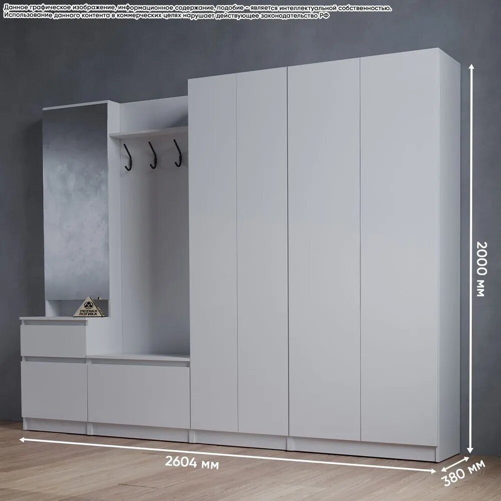 Прихожая для одежды уютная логика дева ВШ260, 2600*2000*380 мм с откидной дверцей, вешалка информация: