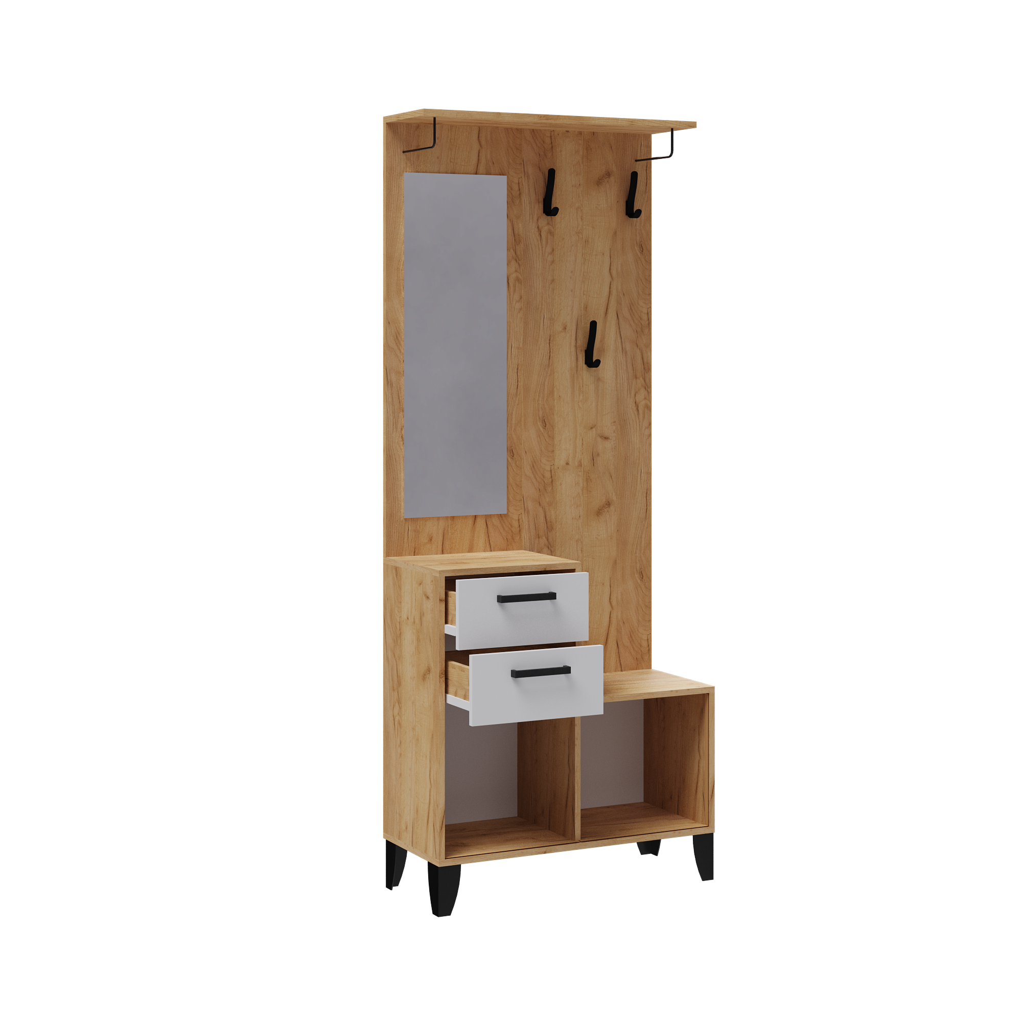 Прихожая с зеркалом, ящиками и вешалками в коридор 80х34х200, дуб крафт золотой/белый информация: