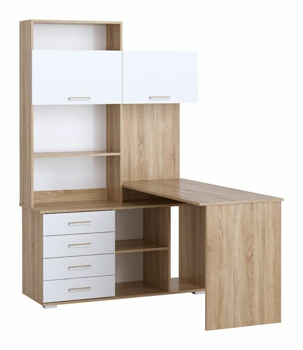 Стол письменный с полками, угловой, компьютерный, универсальный, белый, 100х75х85 см.