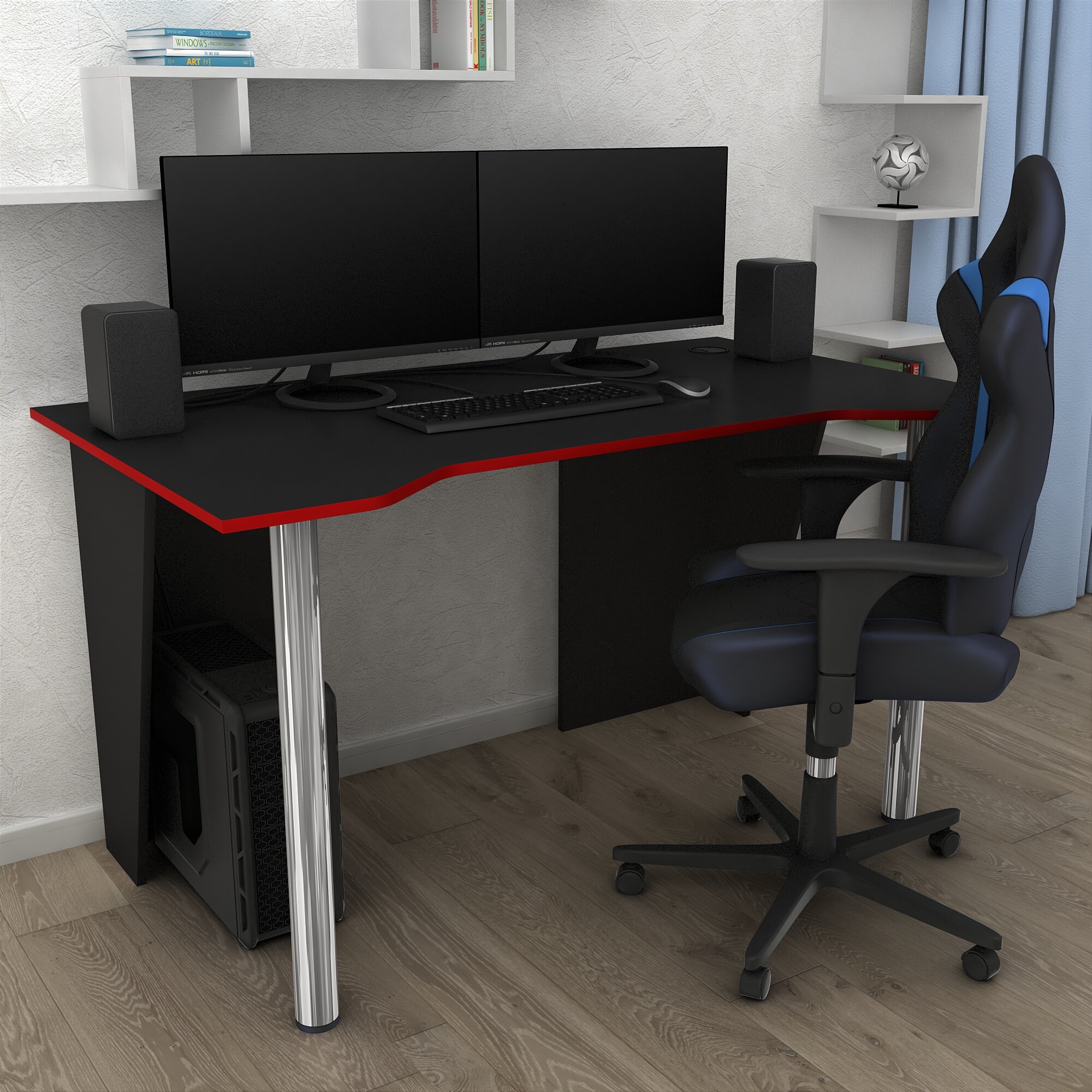 Дополнительная информация | Размеры геймерского стола (ШхГхВ): 1100х740х732 (мм). Максимальная нагрузка на столешницу компьютерного стола: до 55 кг. Декоративные заглушки в тон стола для ноутбука скрытия технологических отверстий. Эргономическая столешница игрового стола для ноутбука. Подробная инструкция по сборке стола для работы в комплекте. ЛДСП класса Е1 (применяется для производства медицинской мебели). Форма поставки: стол для пк в разобранном виде. Количество упаковок: 1 шт.. Удобный. Стильный. Эргономичный. Таким и должен быть идеальный компьютерный стол. Опоры геометрической формы создают небольшие ниши в глубине. Здесь отлично разместится системный блок или другая техника. Хромированные ножки прекрасно сочетаются с дизайном основной конструкции из качественного ЛДСП. Легкая ассиметрия опор выгодно дополняет лаконичный дизайн, а два выреза для проводов помогают организовать рабочее пространство. |