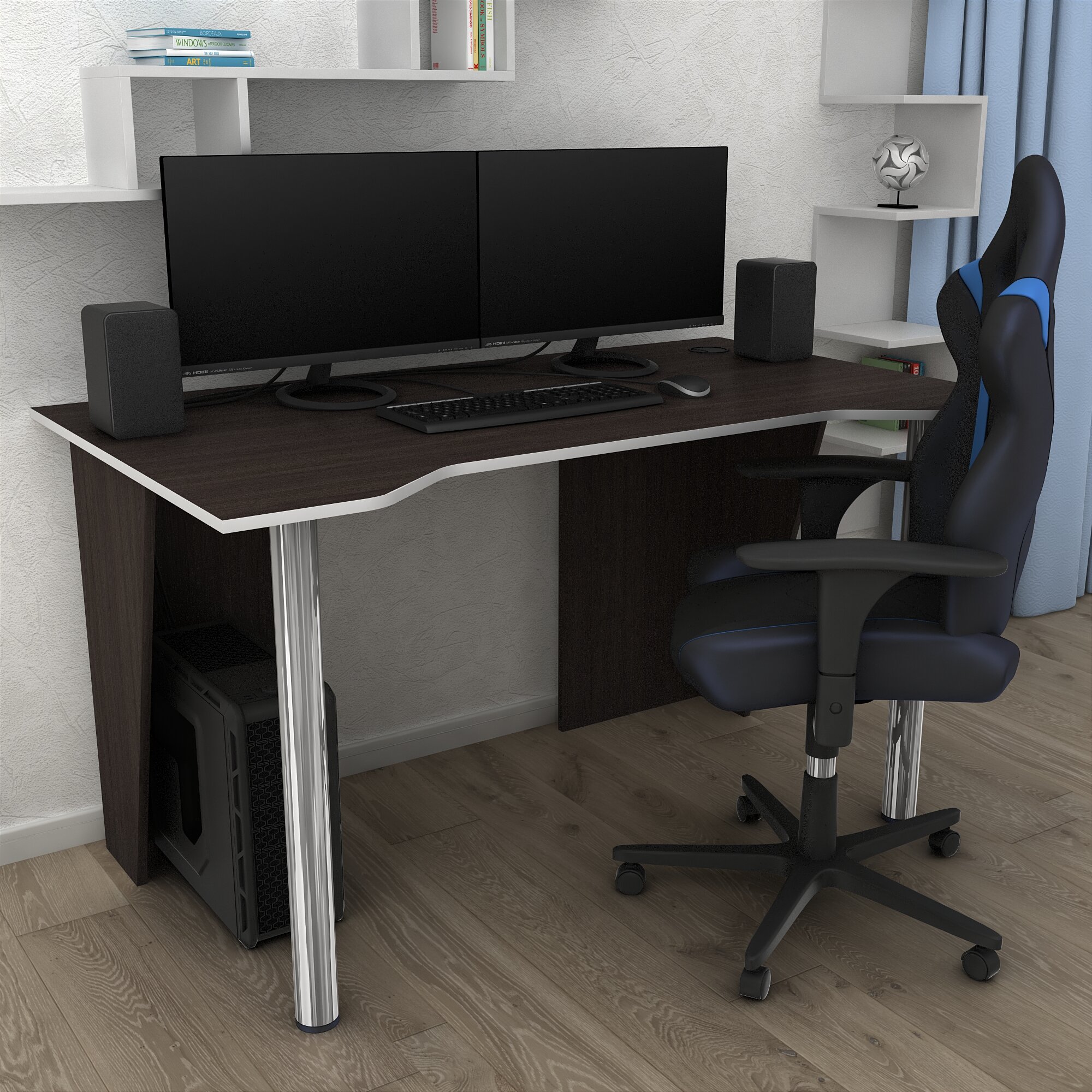 | Дополнительная информация | Размеры геймерского стола (ШхГхВ): 1100х740х732 (мм). Максимальная нагрузка на столешницу компьютерного стола: до 55 кг. Декоративные заглушки в тон стола для ноутбука скрытия технологических отверстий. Эргономическая столешница игрового стола для ноутбука. Подробная инструкция по сборке стола для работы в комплекте. ЛДСП класса Е1 (применяется для производства медицинской мебели). Форма поставки: стол для пк в разобранном виде. Количество упаковок: 1 шт.. Удобный. Стильный. Эргономичный. Таким и должен быть идеальный компьютерный стол. Опоры геометрической формы создают небольшие ниши в глубине. Здесь отлично разместится системный блок или другая техника. Хромированные ножки прекрасно сочетаются с дизайном основной конструкции из качественного ЛДСП. Легкая ассиметрия опор выгодно дополняет лаконичный дизайн, а два выреза для проводов помогают организовать рабочее пространство. |