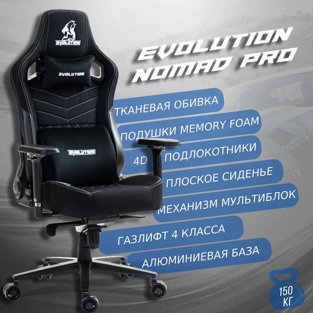 10 цен на Игровое кресло EVOLUTION NOMAD PRO Black White - Ткань, Черный, Белый