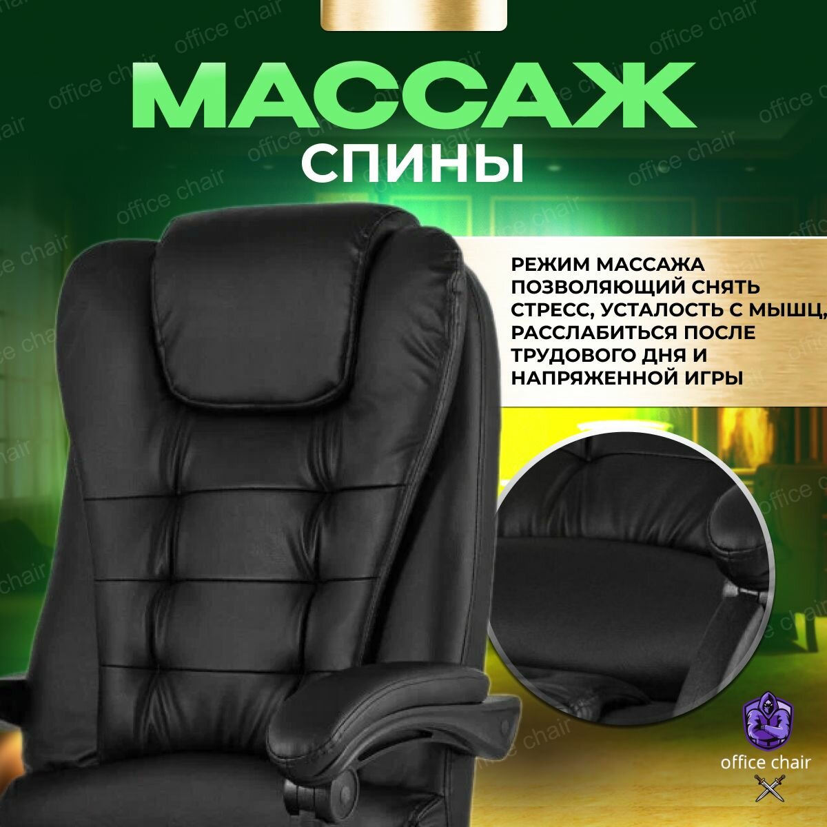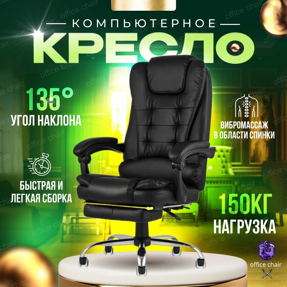 Кресло компьютерное для руководителя с функцией вибромассажа для дома и офиса с подножкой из прочной эко-кожи информация: