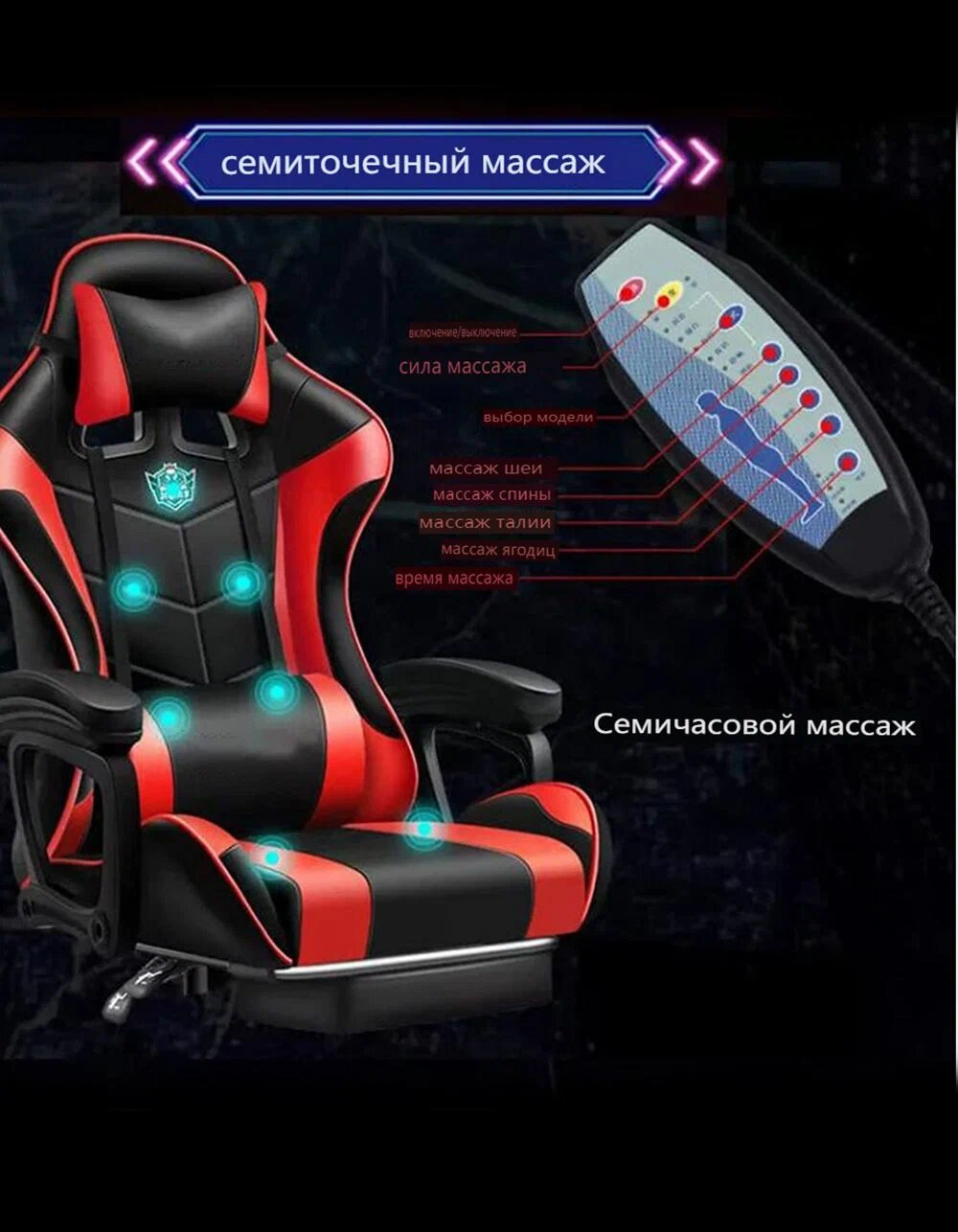 10 цен на AWG-11 Игровое компьютерное кресло, Семиточечный массаж, с пультом дистанционного управления, экокожа, с подлокотниками и подголовником