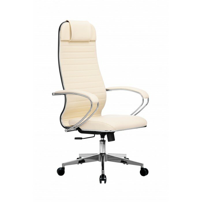 Кресло METTA компьютерное молочное, экокожа, крестовина металл - Кресло руководителя, с подголовником 27 790 ₽