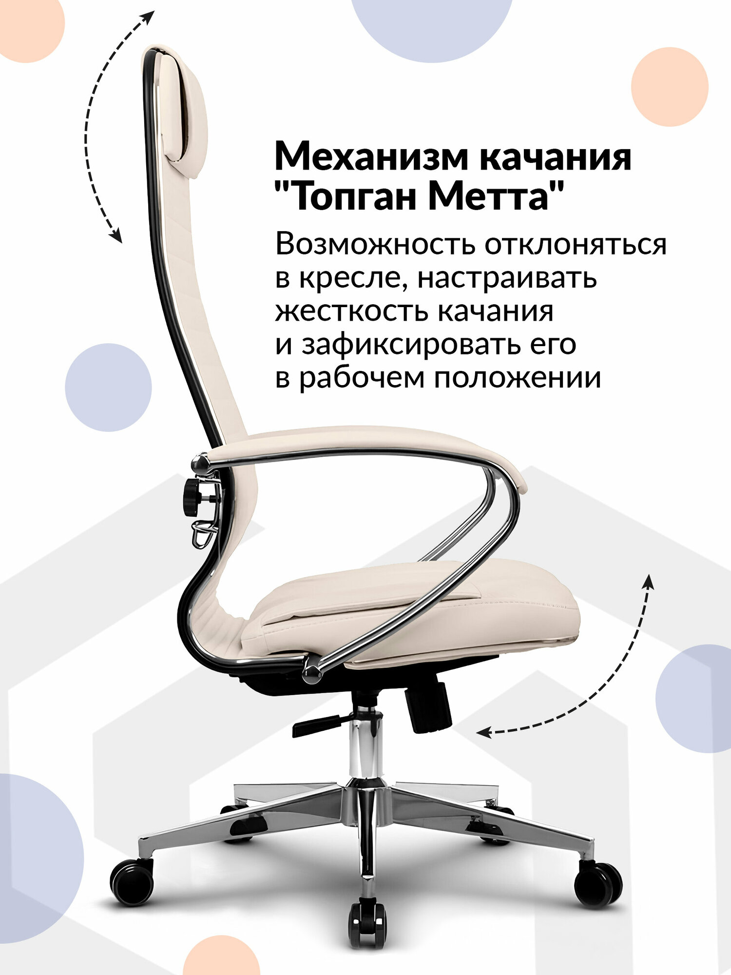 Кресло METTA компьютерное бежевое, экокожа, крестовина металл - Кресло руководителя, с подголовником информация: