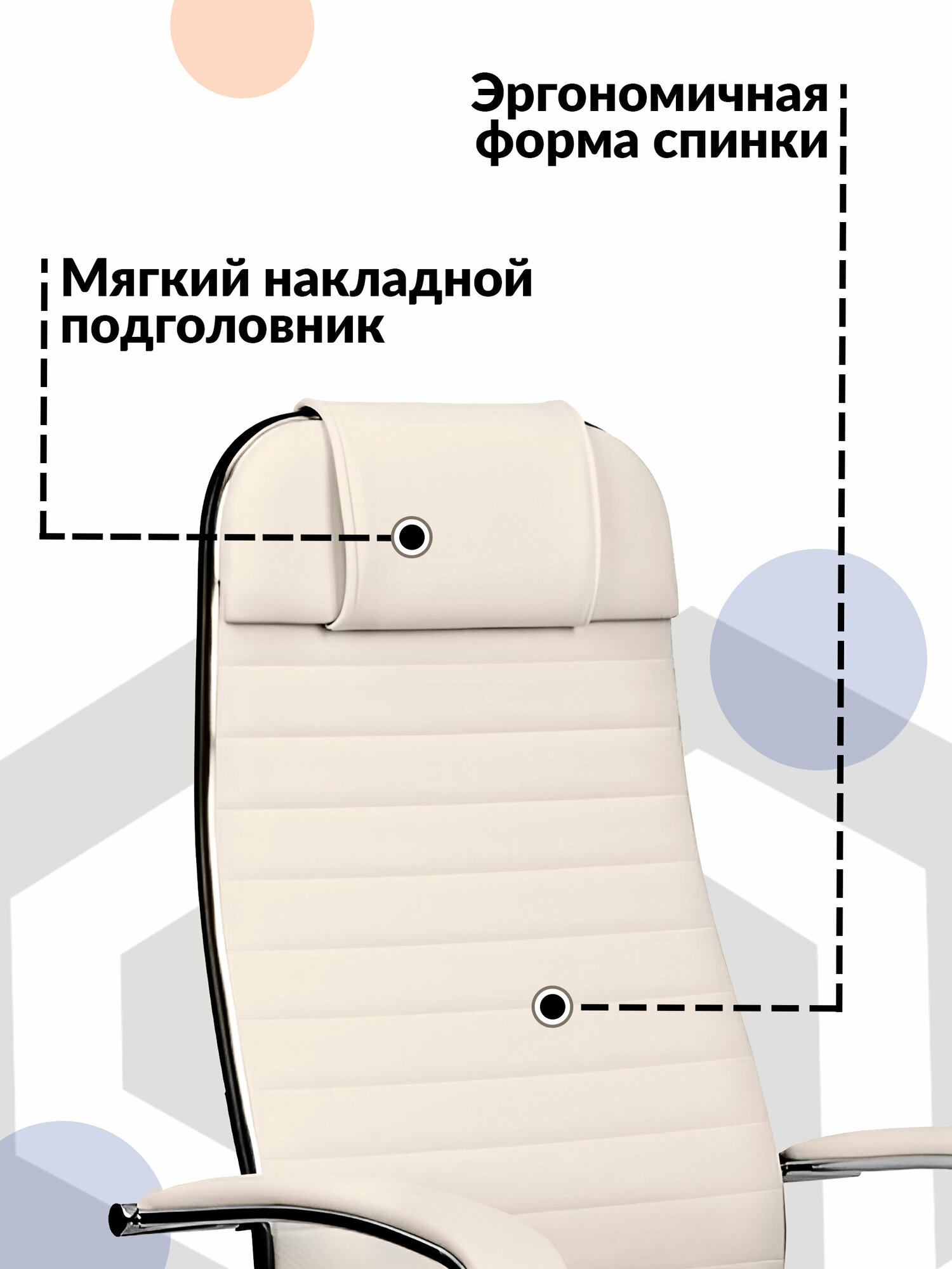 Кресло METTA компьютерное молочное, экокожа, крестовина металл - Кресло руководителя, с подголовником 27 790 ₽
