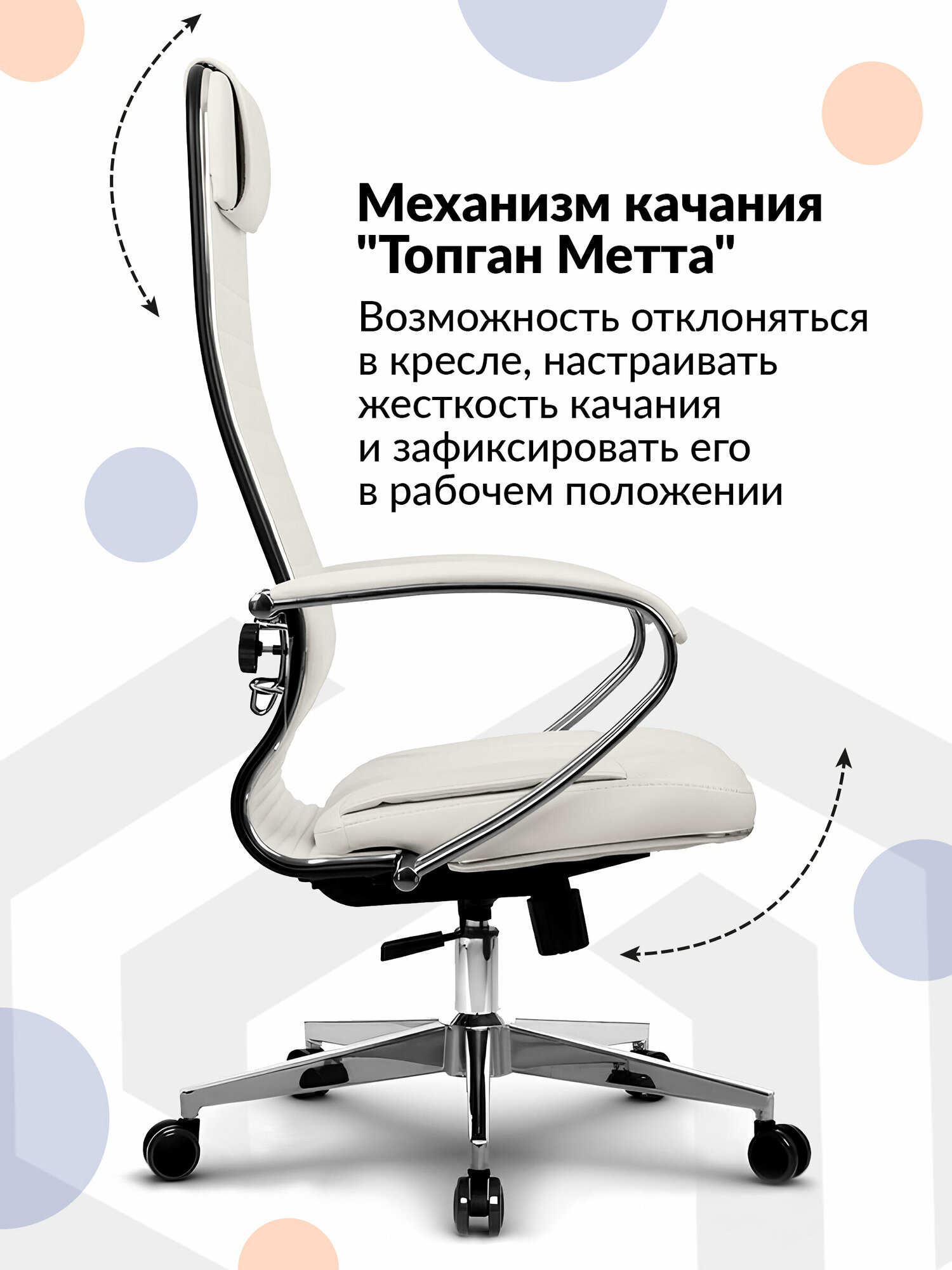 Кресло компьютерное Метта 6-2 на колесиках, с подлокотниками, высокой спинкой, подголовником, экокожа, белое / Стул ортопедический, 120 кг 28 346 ₽