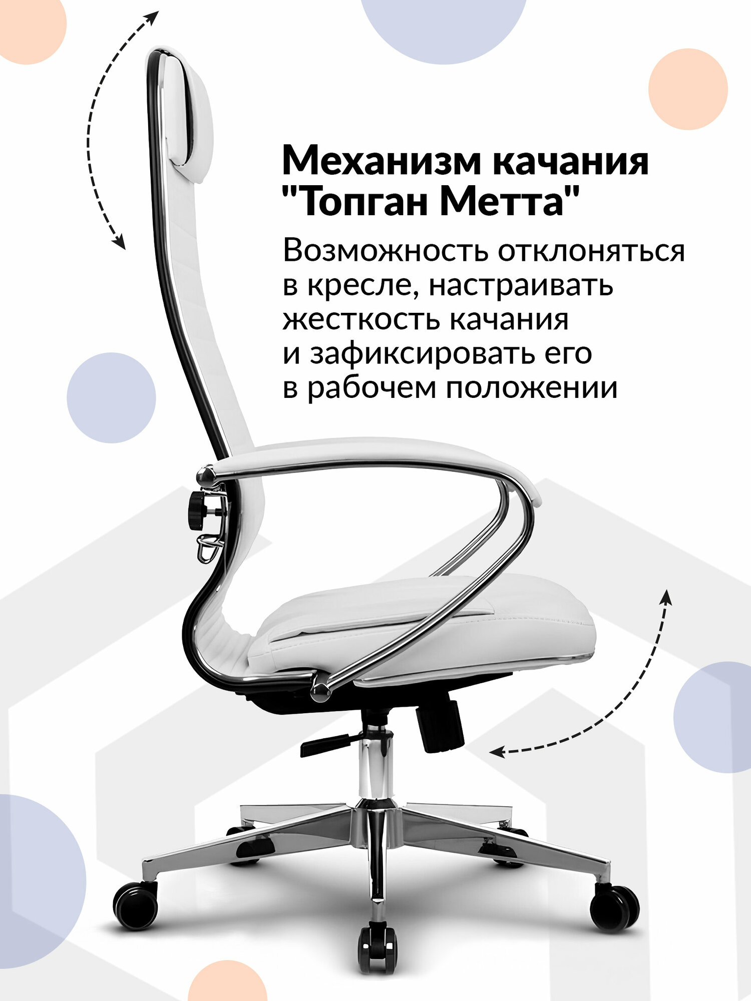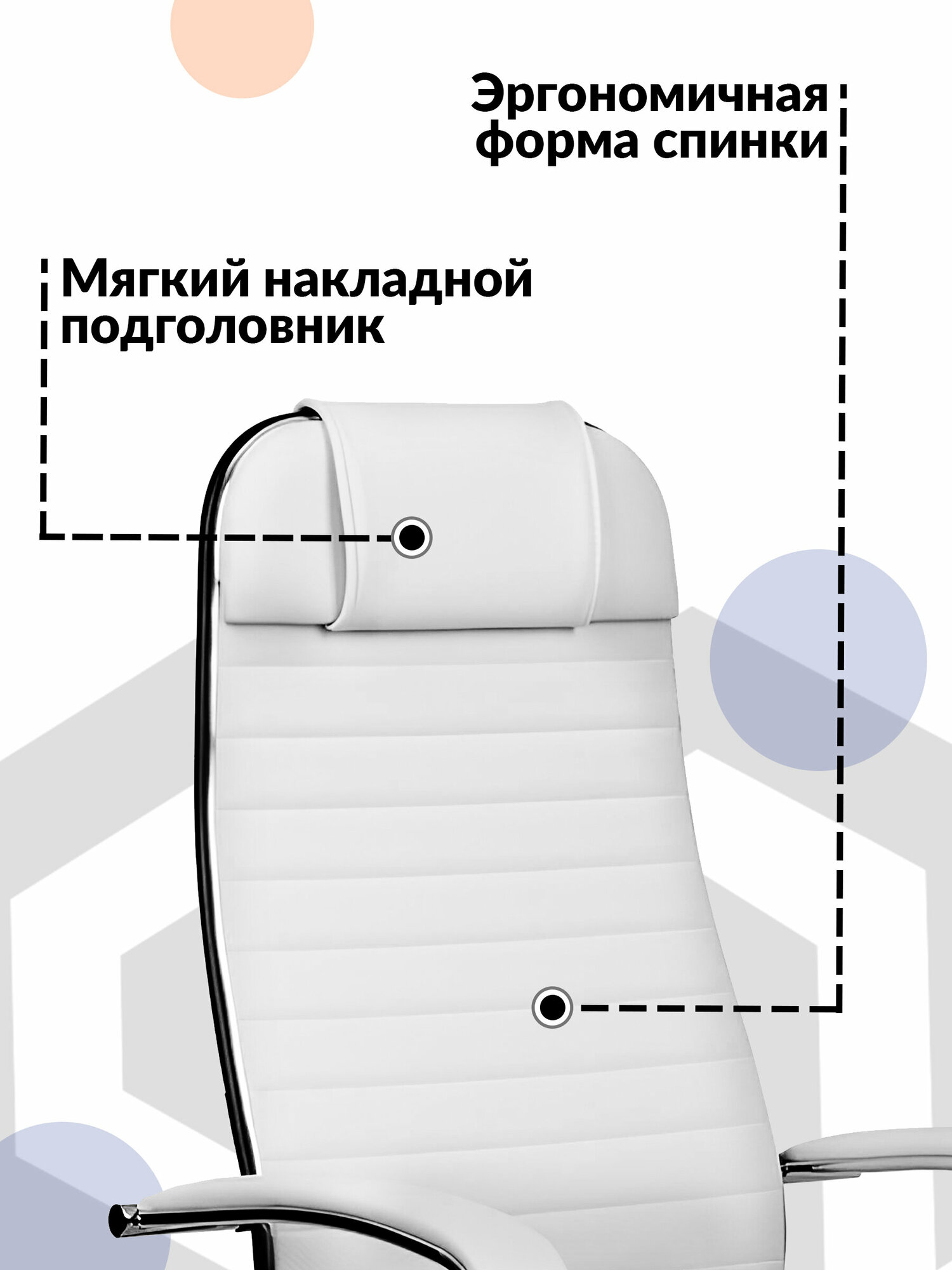Кресло METTA компьютерное белое, экокожа, крестовина металл - Кресло руководителя, с подголовником информация:
