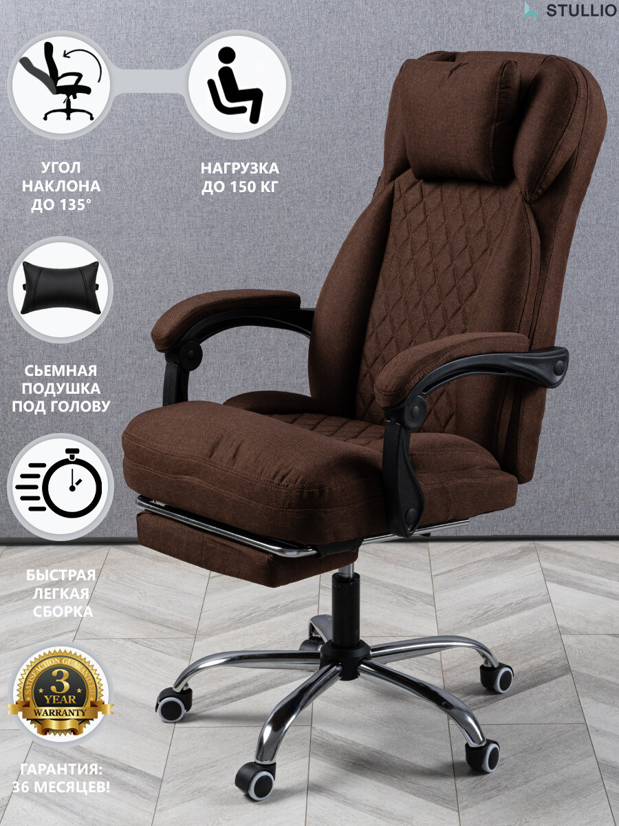 Компьютерное кресло для дома и офиса, с подставкой для ног, из ткани, цвет коричневый информация: