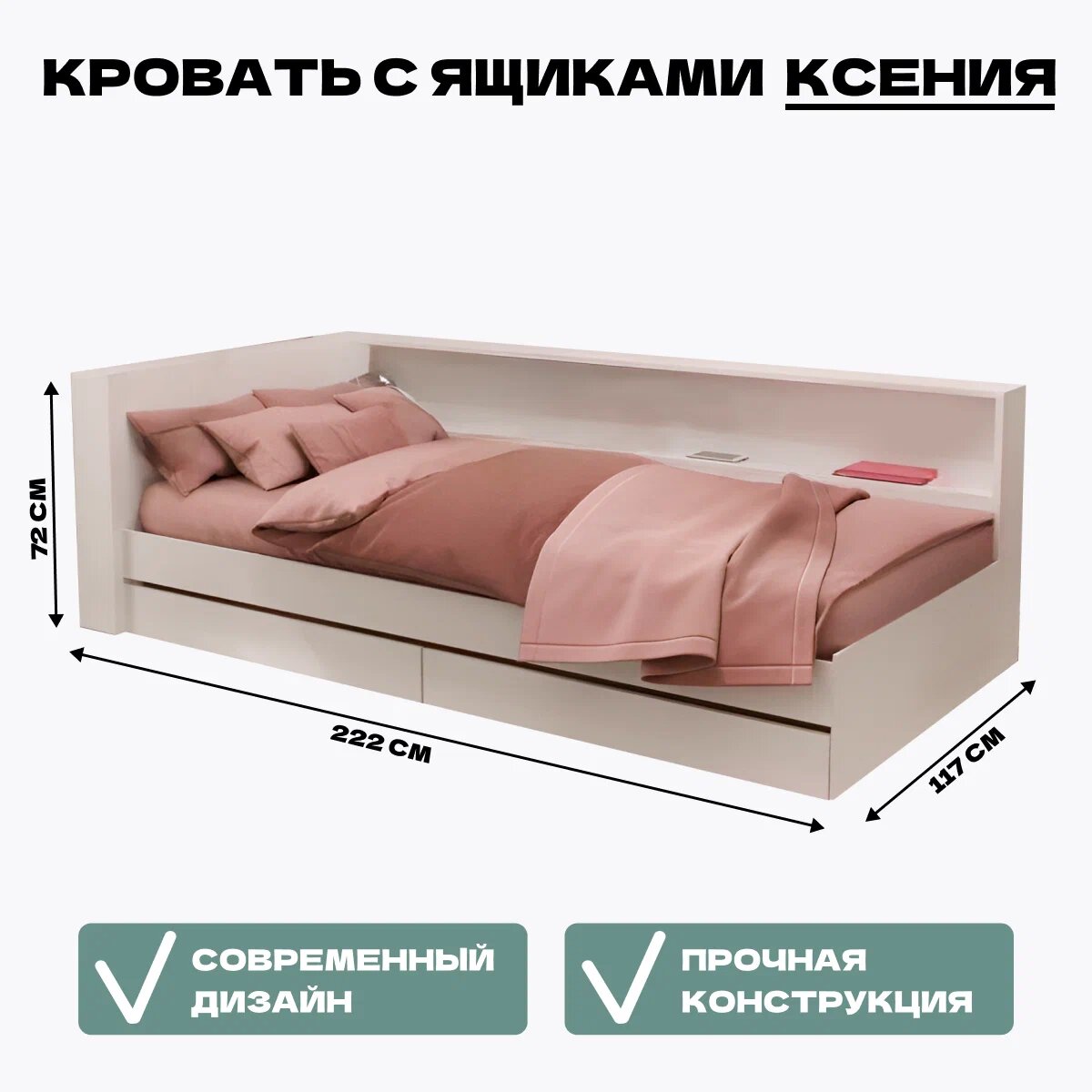 Отзывы на Кровать с ящиками и прикроватным блоком Ksenia 90х200, Белая, HomeGrad