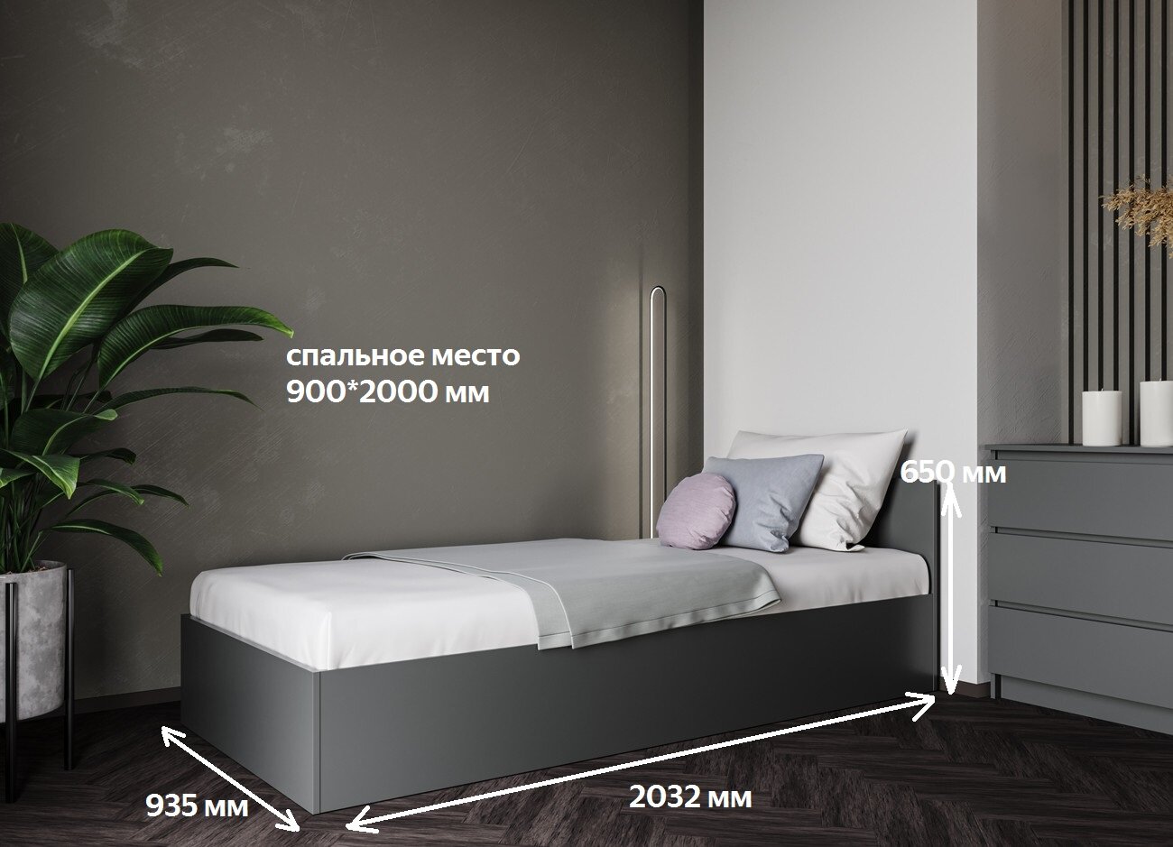 Кровать ДСВ Мебель Мори КРМ 900.1/1 (МП) Графит Размеры: Высота 650мм Глубина 2032мм Ширина 935мм 6 562 ₽