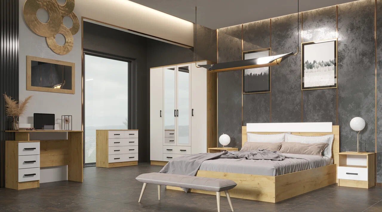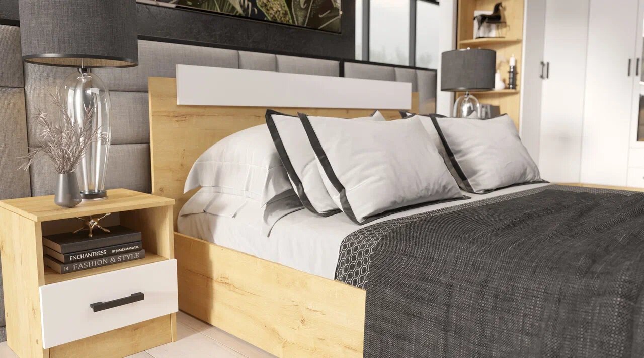 Кровать двуспальная ЭКО 160х200, Дуб вотан/Белый гладкий, с настилом ДСП 7 400 ₽