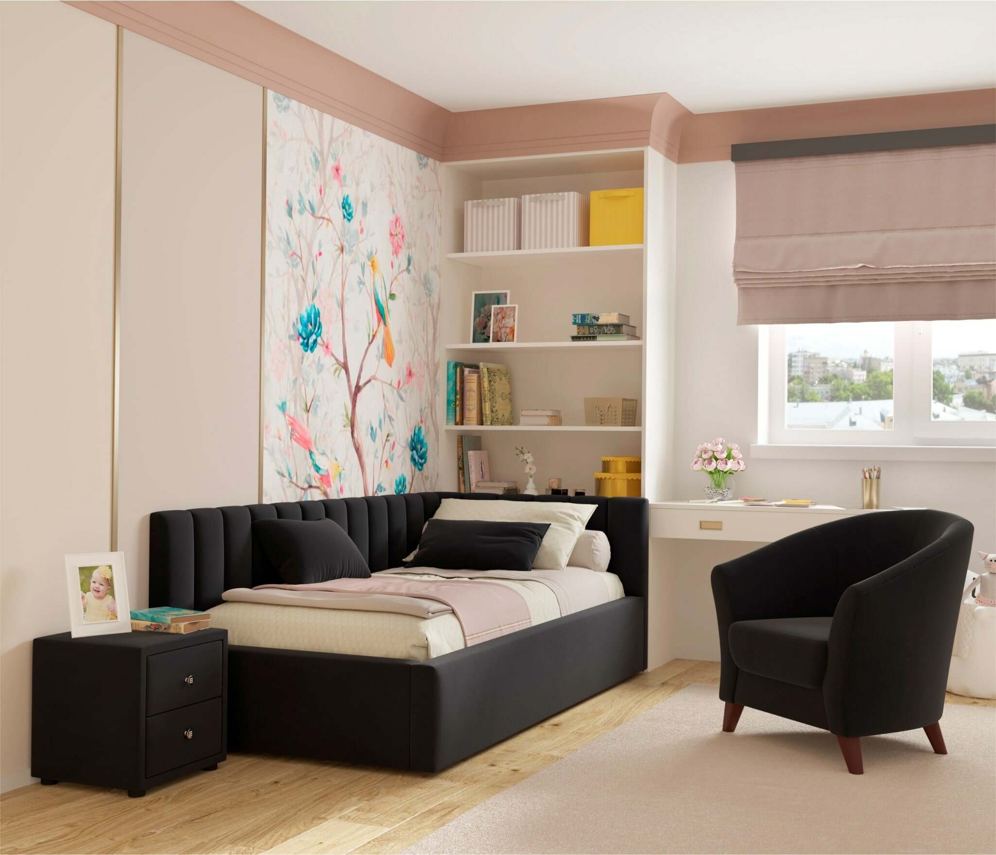 Мягкий диван кровать детская/ подростковая софа с подъемным механизмом асти 90х200 правая