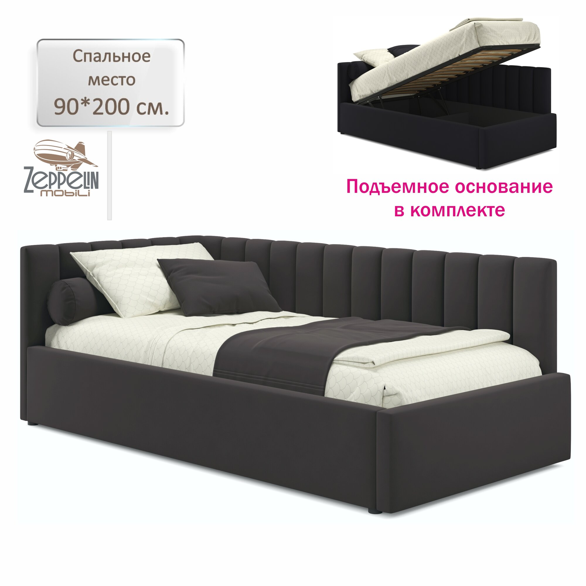 Кровать-тахта Milena 90х200 односпальная шоколадная подъемная, мягкая спинка из велюра, с ортопедическими ламелями, с ящиком для хранения информация: