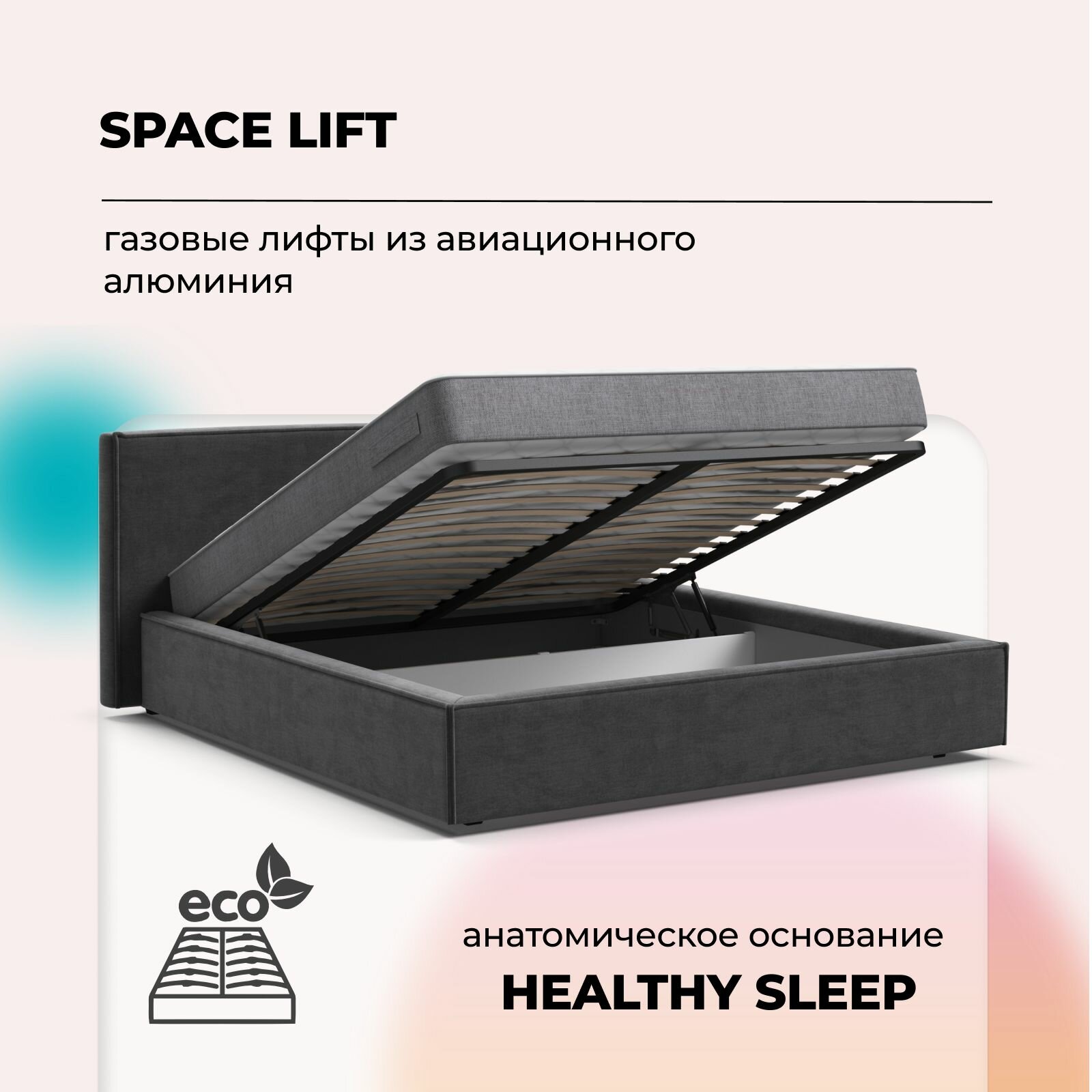 Отзывы на Двуспальная кровать Nord с подъемным механизмом, велюр Monolit серый, 196x224x95 см