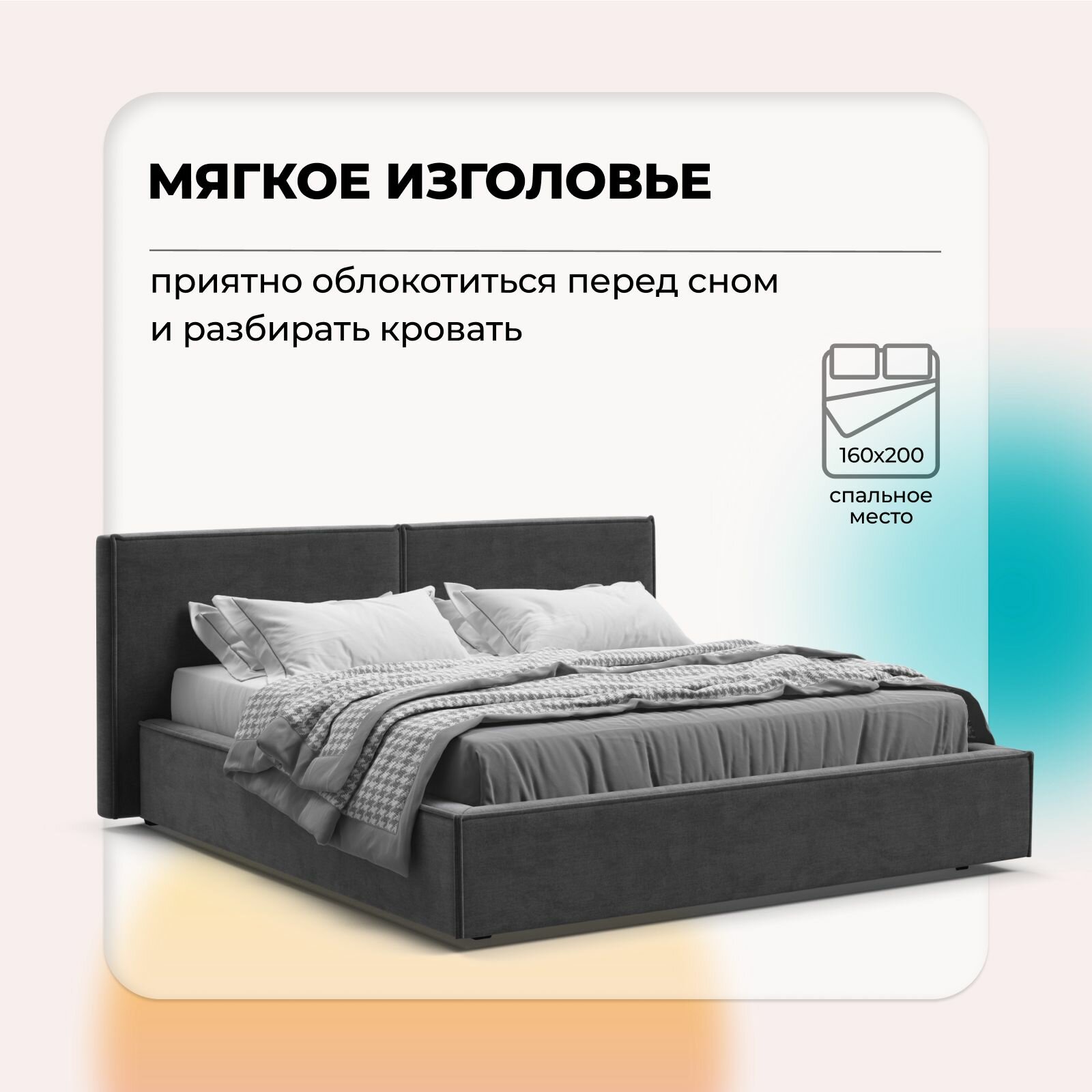 Двуспальная кровать Nord с подъемным механизмом, велюр Monolit серый, 196x224x95 см информация: